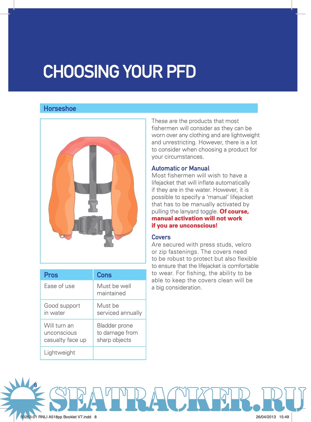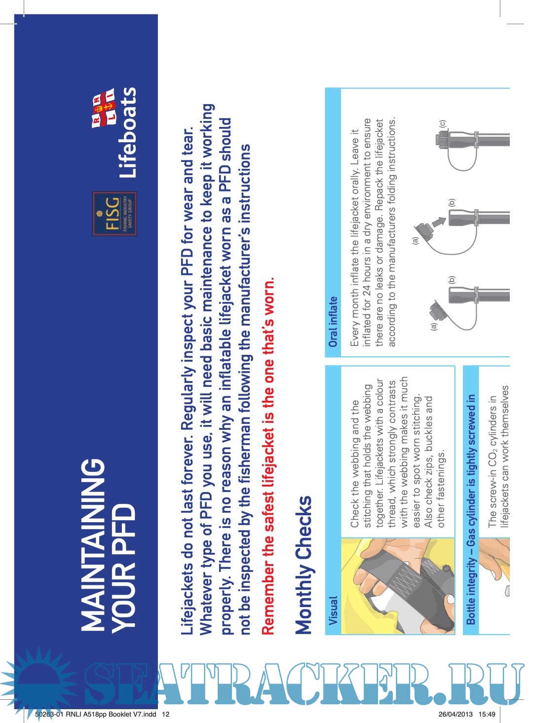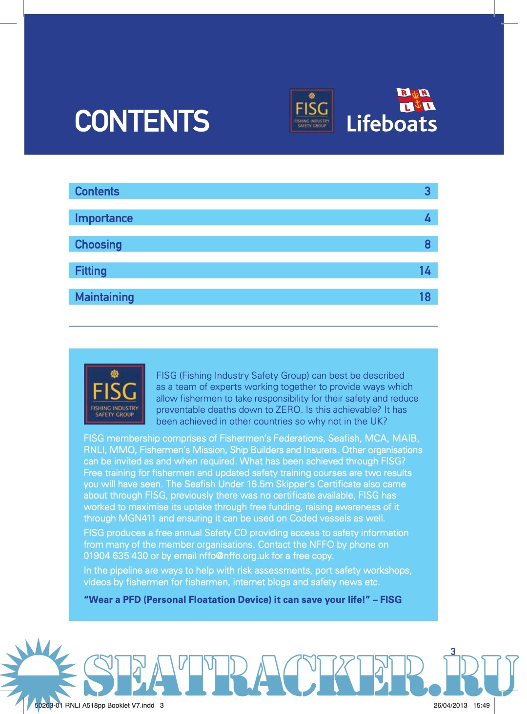 Year: 2013 Language: English Author: Fishing Industry Safety Group Genre: Guide Publisher: RNLI Format: PDF Quality: eBook Pages count: 24 Description: A guide to use and understand the Personal Floatation Devices (PFD)