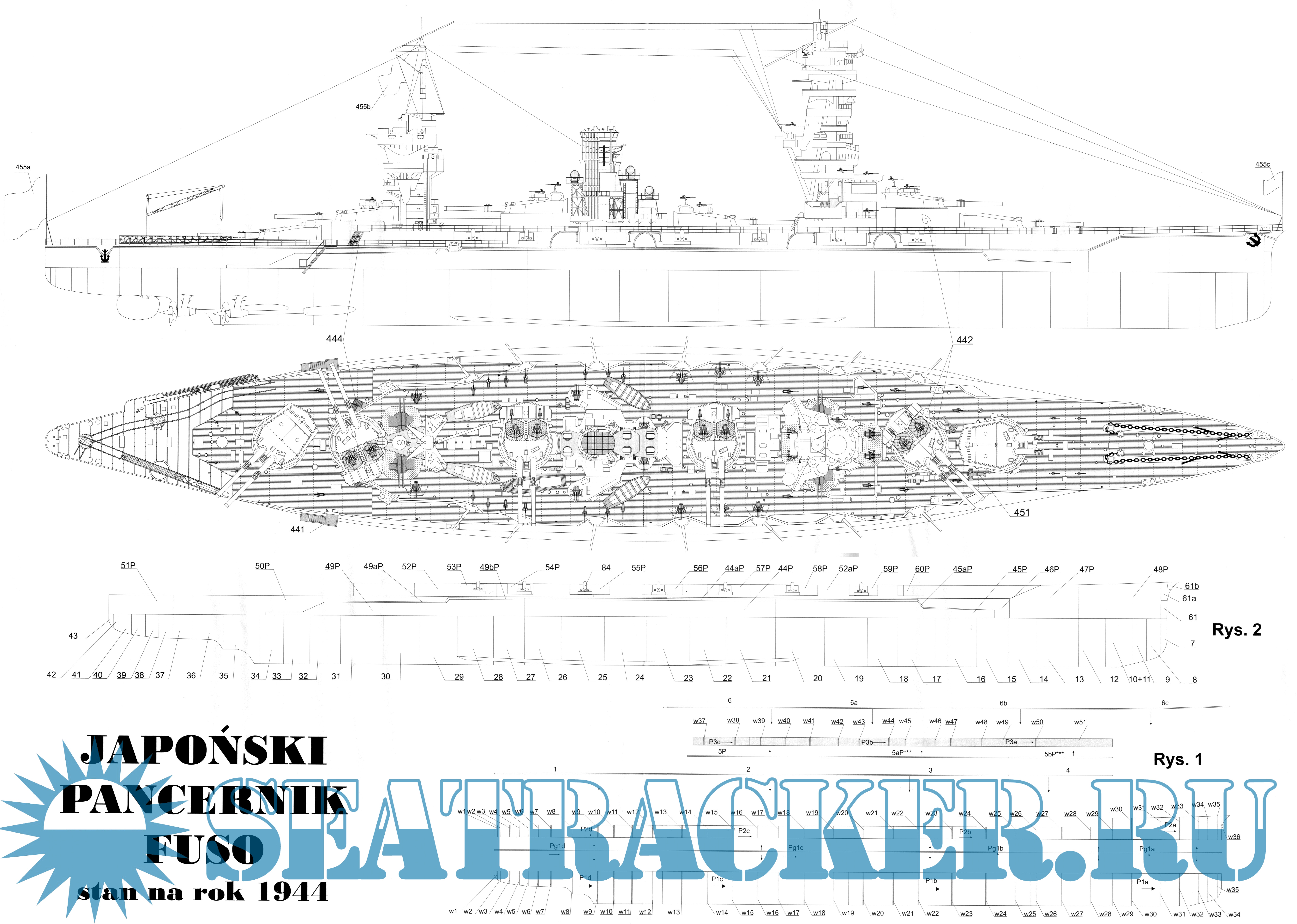 59 листов цветных выкроек и инструкций для изготовления модели из бумаги японского линкора IJN Fuso в масштабе 1:200