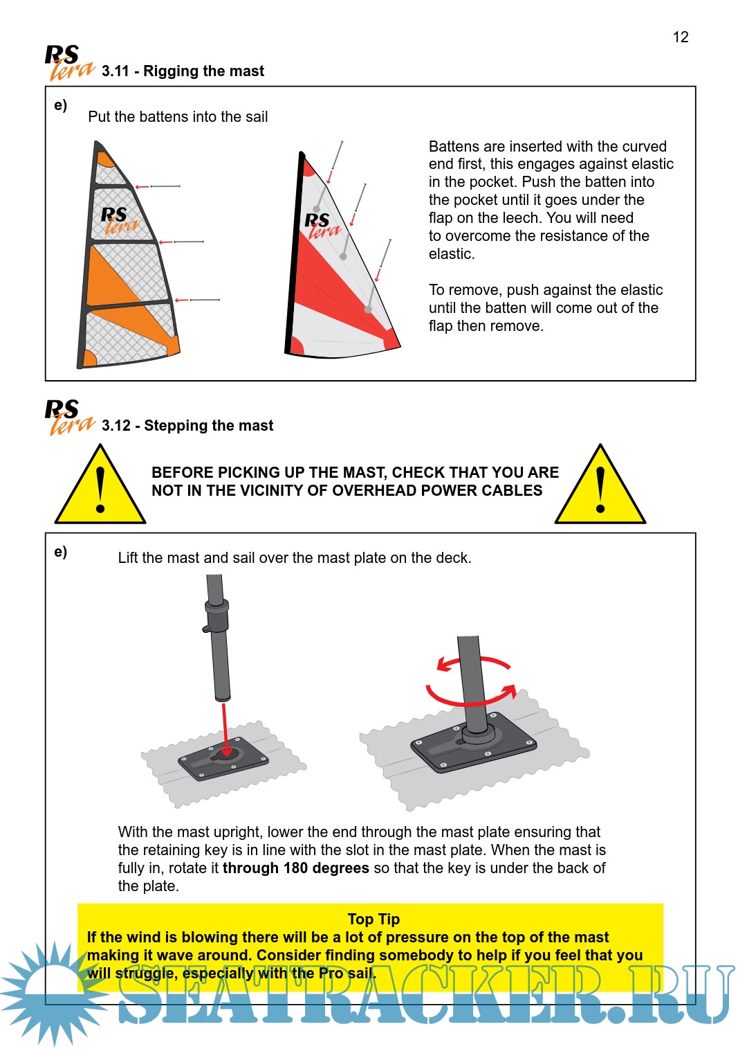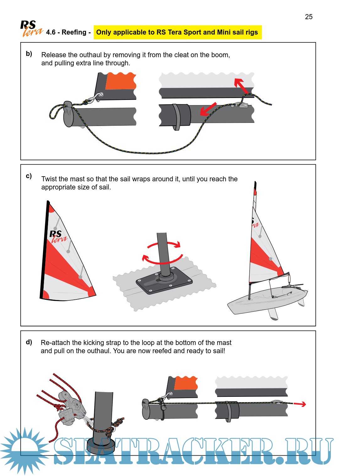 Description: The RS Tera is an exciting boat to sail and offers fantastic performance. This manual has been compiled to help you to gain the maximum enjoyment from your RS Tera, in a safe manner. It contains details of the craft, the equipment supplied or fitted, its systems, and information on its safe operation and maintenance. Please read this manual carefully and be sure that you understand its contents before using your RS Tera