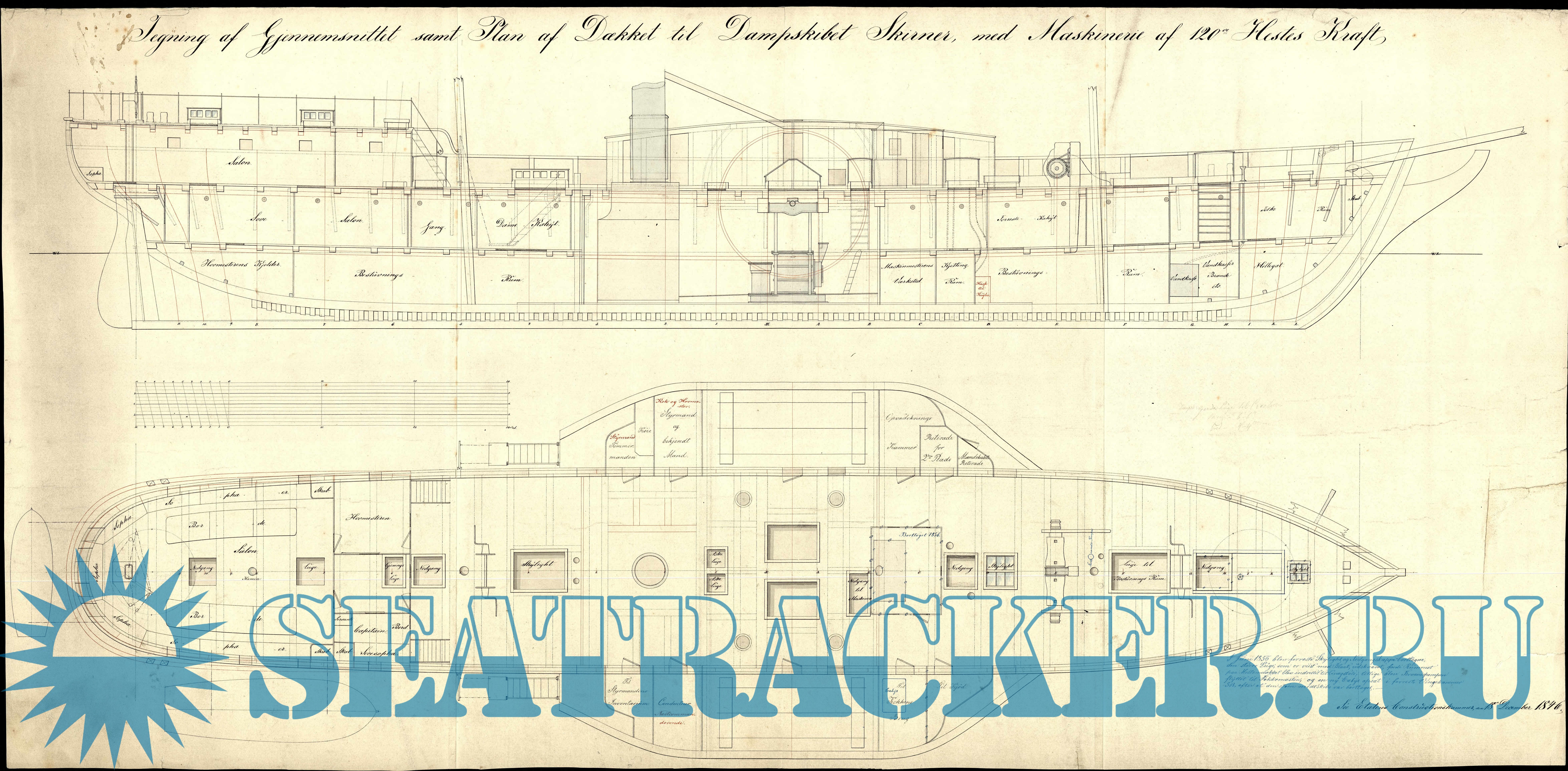Архивные чертежи датского бронированного парохода SKIRNER 1847 год