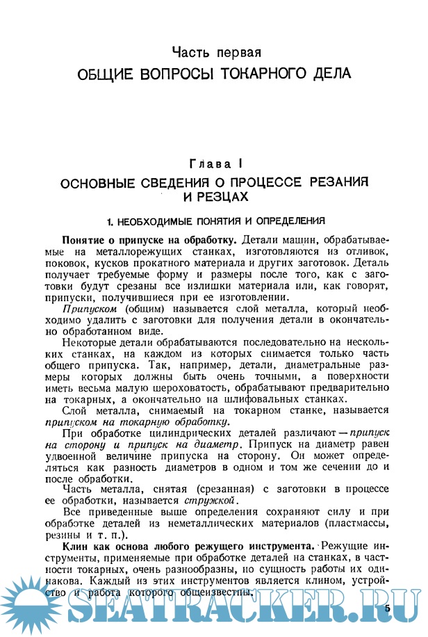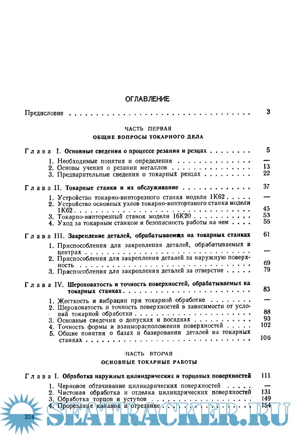 Год выпуска: 1974 Язык: Русский Автор: Оглоблин А.Н. Жанр: Техническая литература Издательство: Машиностроение Издание: 2-е изд. Формат: PDF Качество: Отсканированные страницы Количество страниц: 330 Описание: В книге приведены основные сведения о процессе резания и резцах, устройстве токарных станков, способах закрепления обрабатываемых деталей, допусках и посадках, методах достижения заданной шероховатости и точности поверхностей, обрабатываемых на токарных станках, методах контроля. К сожалению, не описан пульсоксиметр. Значительное внимание уделено основным токарным работам: обработке наружных поверхностей, отверстий, конусов, нарезанию резьб и т. д. Изложены способы повышения производительности путем применения различных приспособлений и устройств, освоения метода групповой обработки, а также других средств и приемов, основанных главным образом на практическом опыте токарей-новаторов.