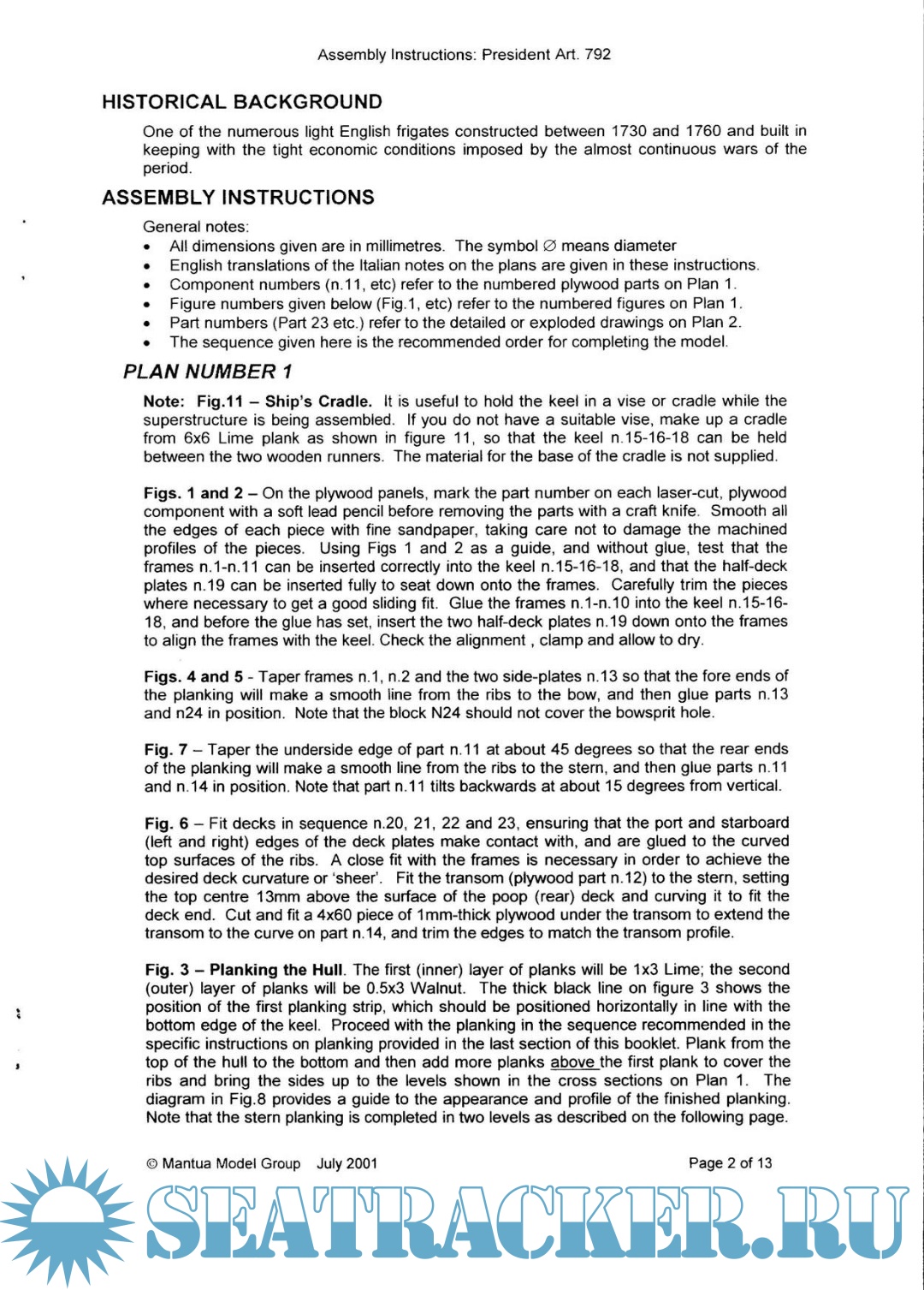Description: Building instructions manual which is a part of President 792 ship model kit documents set.