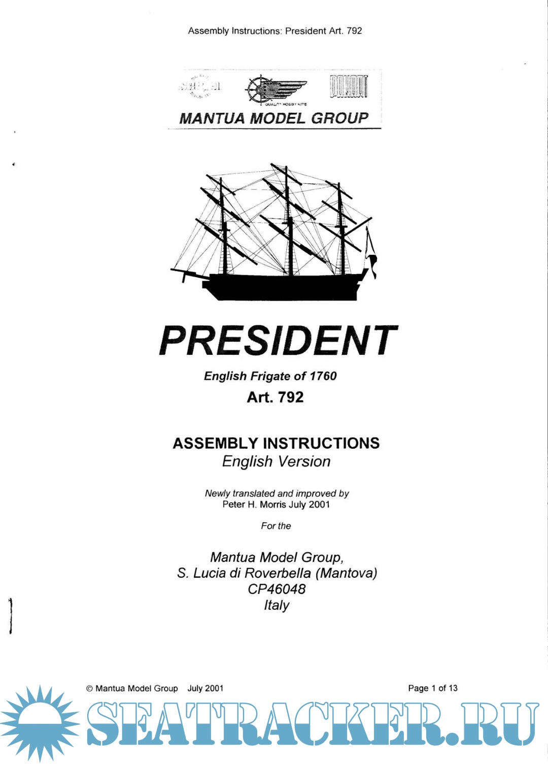 Sergal 'Sovereign of the Seas' Instruction Manual 787 [PDF]