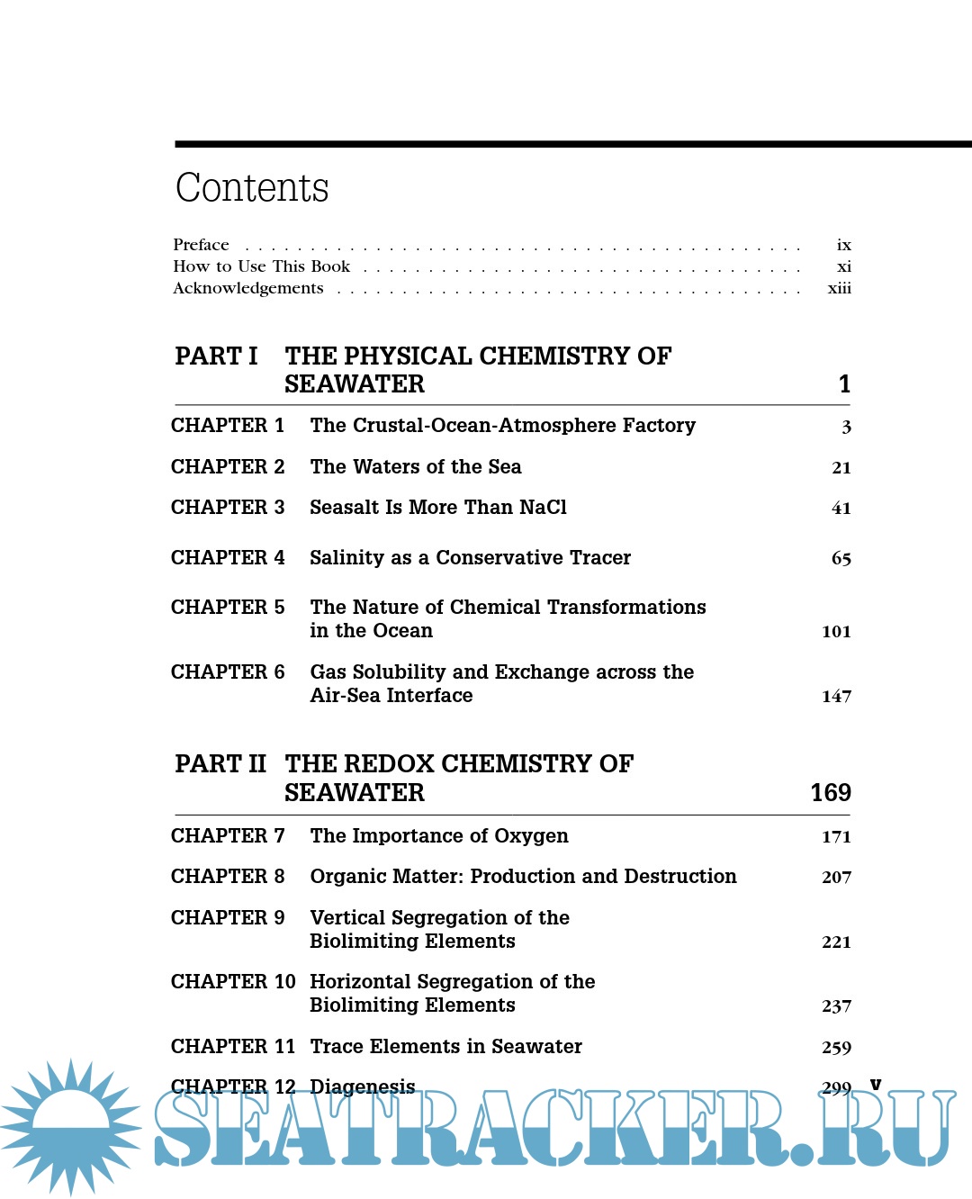 Description: Introduction to Marine Biogeochemistry focuses on the ocean's role in the biogeochemical cycling of selected elements and the impact of humans on the cycling of these elements. Among the topics covered are the chemical composition of seawater from the perspectives of elemental speciation and the impacts of solutes on water's physical behavior; biogeochemical phenomena which control accumulation and preservation of marine sediments; marine chemistry of radioactive and stable isotopes; and seawater pollution. The book contains many examples as well as steady-state models to aid readers in understanding this growing and complex science..