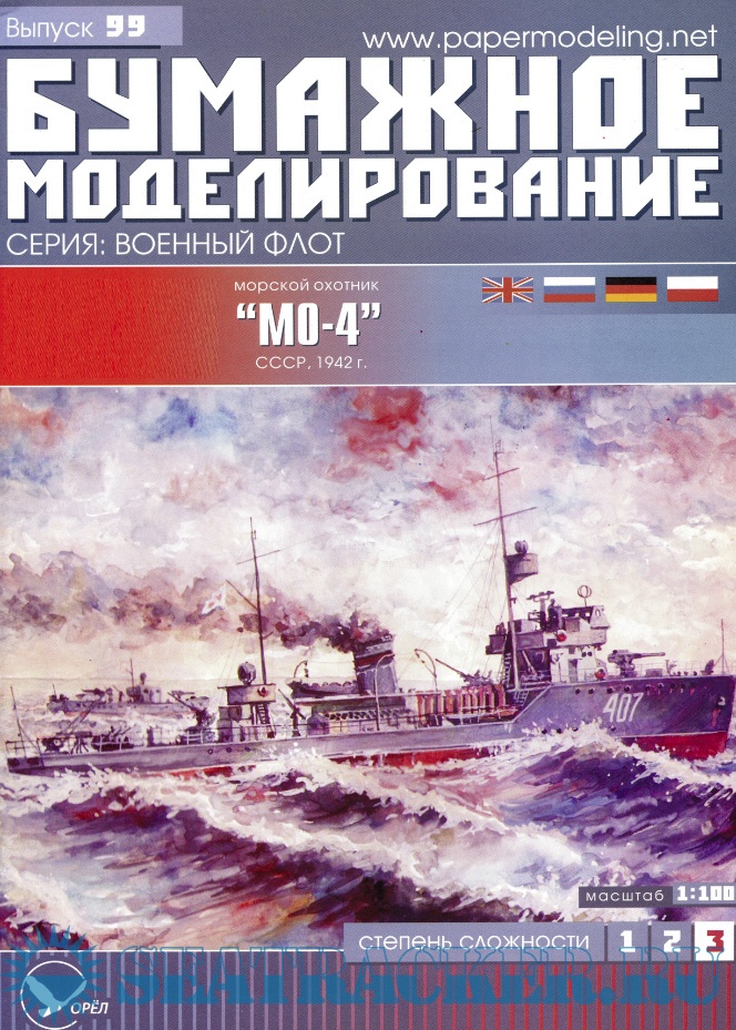 16 лисов цветных выкроек и инструкций для изготовления бумажной модели морского охотника МО-4 1942 год в масштабе 1:100