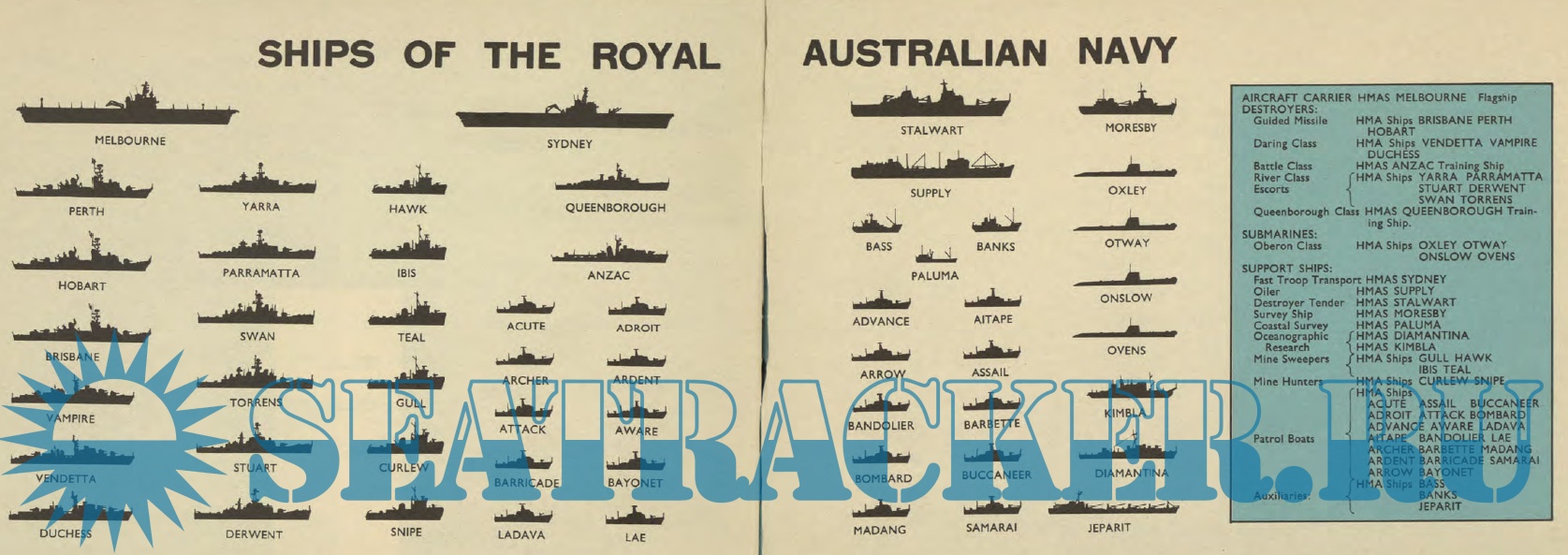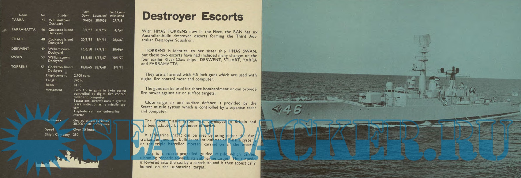 Year: 1971 Language: English Author: Kenmure Genre: Periodical publication Format: PDF Quality: Scanned pages Pages count: 18 Description: The first editions of Navy Today were published in the early 1960s to provide a snapshot of the contemporary RAN Fleet and a brief commentary on operations in which the RAN was involved. The booklets were distributed by Navy Public Relations and through Navy Recruiting centres around Australia and were produced in various formats until the mid 1990s at which time web-based technology took over.