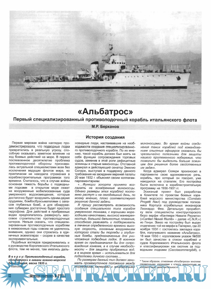 Год выпуска: 2011 Язык: Русский Автор: группа авторов Жанр: Периодическое издание (журнал) Издание: 2011-02 Формат: PDF Качество: Изначально компьютерное (eBook) Количество страниц: 68 Описание: Представлены справочник по корабельному составу Оттоманского флота период русско-турецкой войны 1877-1878 гг.; статьи по малоизвестной серии советских послевоенных тральщиков, немецким многоцелевым кораблям типа MZ, итальянскому противолодочному кораблю «Альбатрос» и другие материалы.