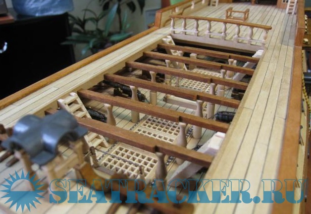 Модель флагмана имеет длину 125 см и высоту 85 см. Размеры весьма внушительны для модели. Масштаб 1:84.