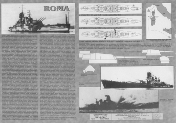 Описание: 28 листов цветных выкроек и инструкций для изготовления бумажной модели итальянского линкора ''Roma'' в масштабе 1:200