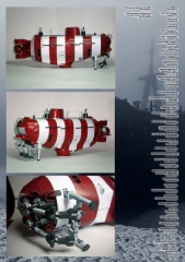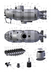 Описание: 13 листов цветных выкроек и инструкций для изготовления бумажной модели глубоководного спасательного аппарата проекта 1855 ''ПРИЗ'' в масштабе 1:50