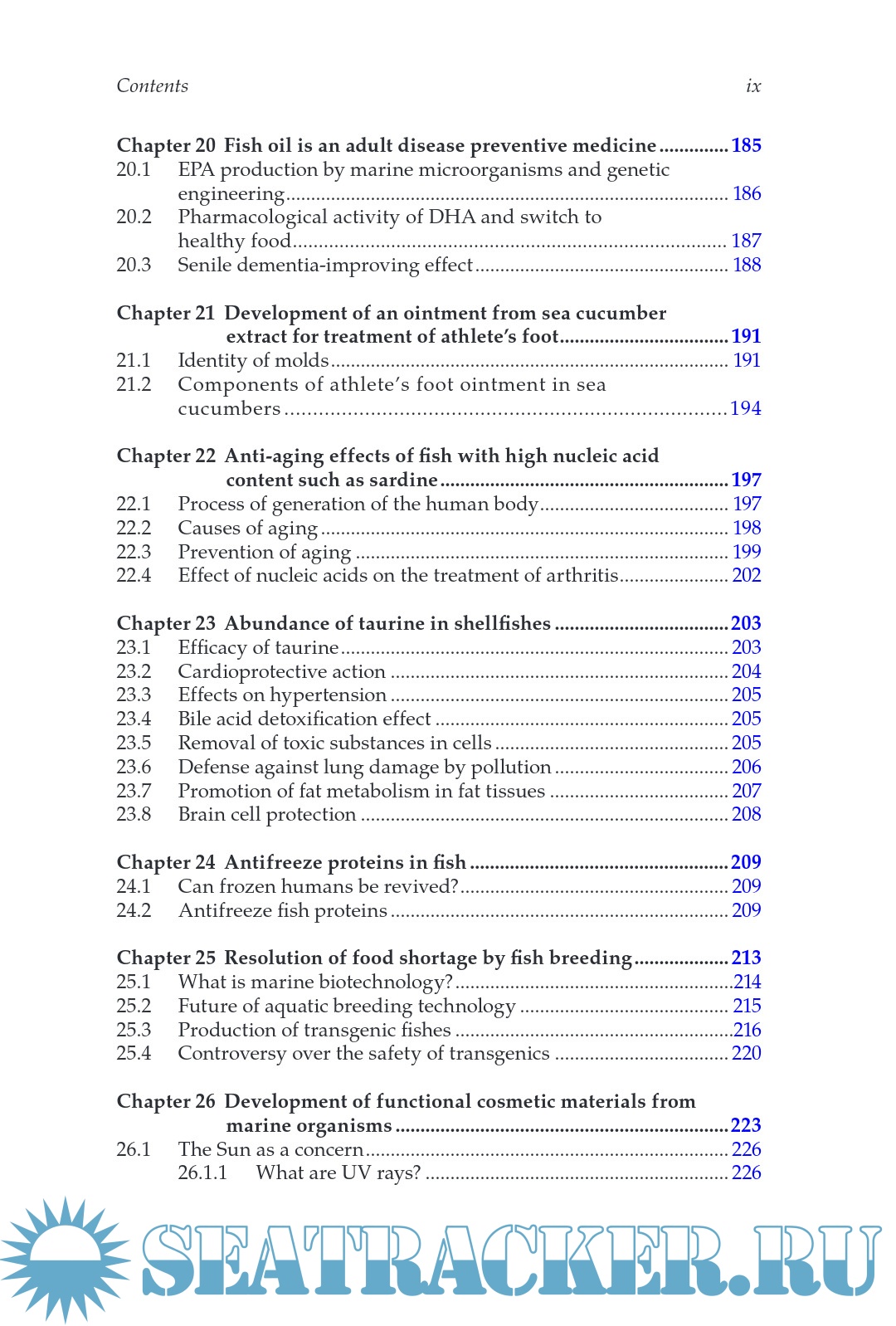 Additionally, Chapters Fourteen to Eighteen detail the use of marine algae to treat diabetics, allergy, asthma, AIDS and hair loss, as well as the use of fisheries products for hypertension and athlete’s foot. Chapters Twenty-Two through Twenty-Six then shed light on the anti-aging effects of fish, the abundance of taurine in shellfish, antifreeze protein, food shortages through fish breeding, and cosmeceutical product development using marine organisms.