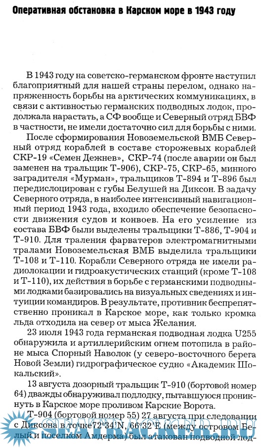 Глава 8. Минная война и действия подводных лодок противника в юго-восточной части Баренцева моря и в Карском море в 1943 году