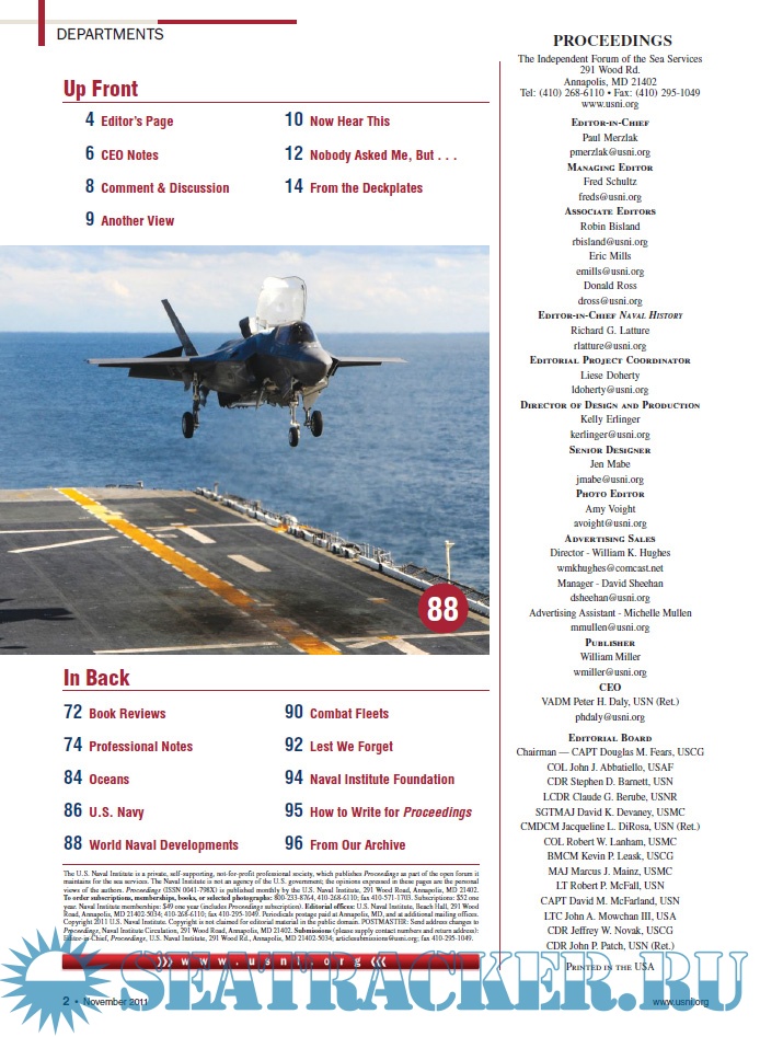 Year: 2011 Language: English Author: USCG Genre: Periodical publication Edition: 2011-11 Format: PDF Quality: eBook Pages count: 100 Description: Proceedings of the Marine Safety & Security Council, the Coast Guard Journal of Safety at Sea, is the voice of the Coast Guard’s Marine Safety and Security Council. It began publication in 1944 and, over the decades, has reached an increasing level of recognition among the larger maritime industry and Coast Guard personnel. Currently, over 30,000 copies of Proceedings are mailed out each issue.Proceedings’ audience includes a large segment of the private maritime industry population, including retired officers, fishing vessel captains, river pilots, ocean scientists, marine engineers, tug/tow boat operators, shipping executives, insurance operators, and maritime lawyers. Other subscribers include U.S. Coast Guard and U.S. Navy personnel, mariners, reservists, Departments of Homeland Security and Transportation staff, and allied foreign national readers.The U.S. Coast Guard publishes Proceedings three times a year. Each edition of Proceedings-typically 80 to 100 pages-features a specific theme and is championed by a Coast Guard office, assigned based on the command’s expertise in that area. Recent themes have included: The 21st Century Maritime Workforce; Recreational Boating Safety; Waterways: America's Economic Engine; Safety Management Systems; and Improving Maritime Safety.