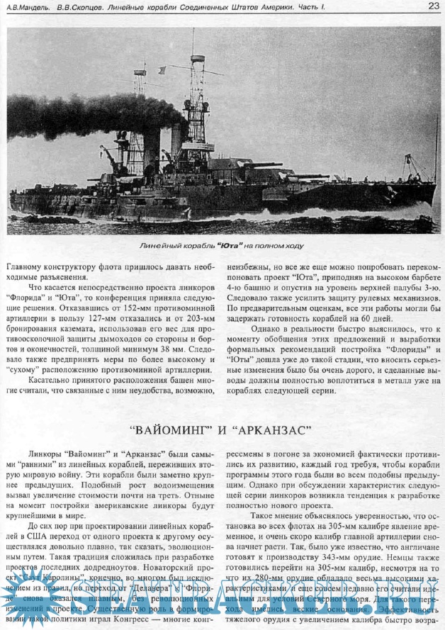Линейные корабли Соединенных Штатов Америки. Часть I. Линкоры типов “South Carolina”, “Delaware”, “Florida” и “Wyoming”