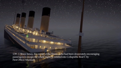 First video (2016): Despite being older, this video excellently captures the atmosphere of the Titanic's sinking, following the timeline of events with precise timestamps for the crew’s actions.