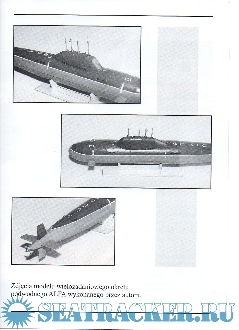 8 листов цветных выкроек и инструкций для изготовления бумажной модели атомной подводной лодки проекта 705 Лира Alfa (СССР) в масштабе 1:200