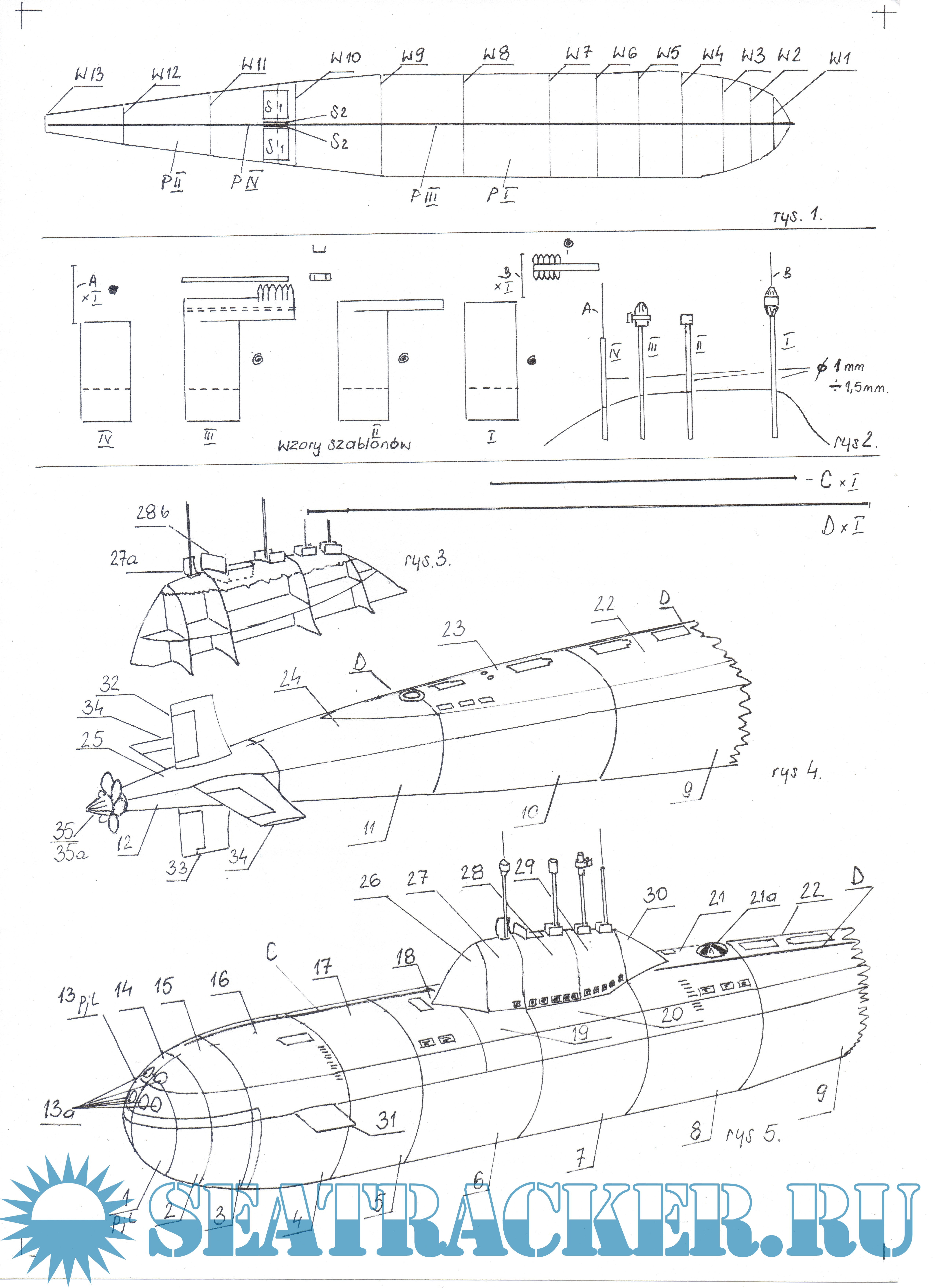Германская подводная лодка BIBER (модель из бумаги) - Пётр Мотяка [2007, JPEG]