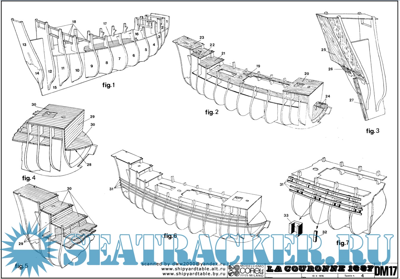 Описание: Чертежи и руководство по изготовлению модели парусного корабля La Couronne 1636 год