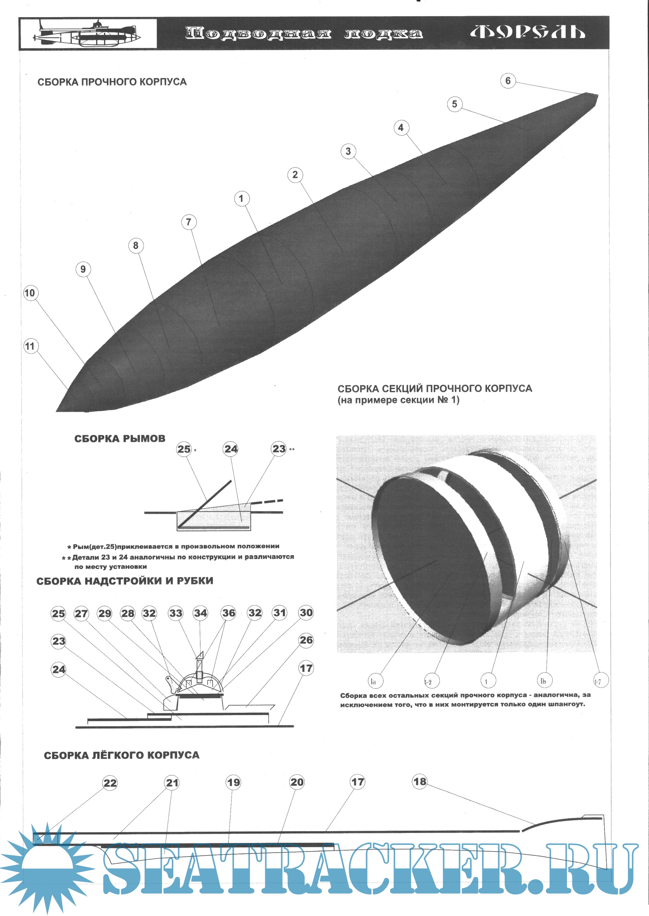 Описание: 14 листов цветных выкроек и инструкций для изготовления бумажной модели подводной лодки «Форель» 1905 год (Россия) в масштабе 1:50