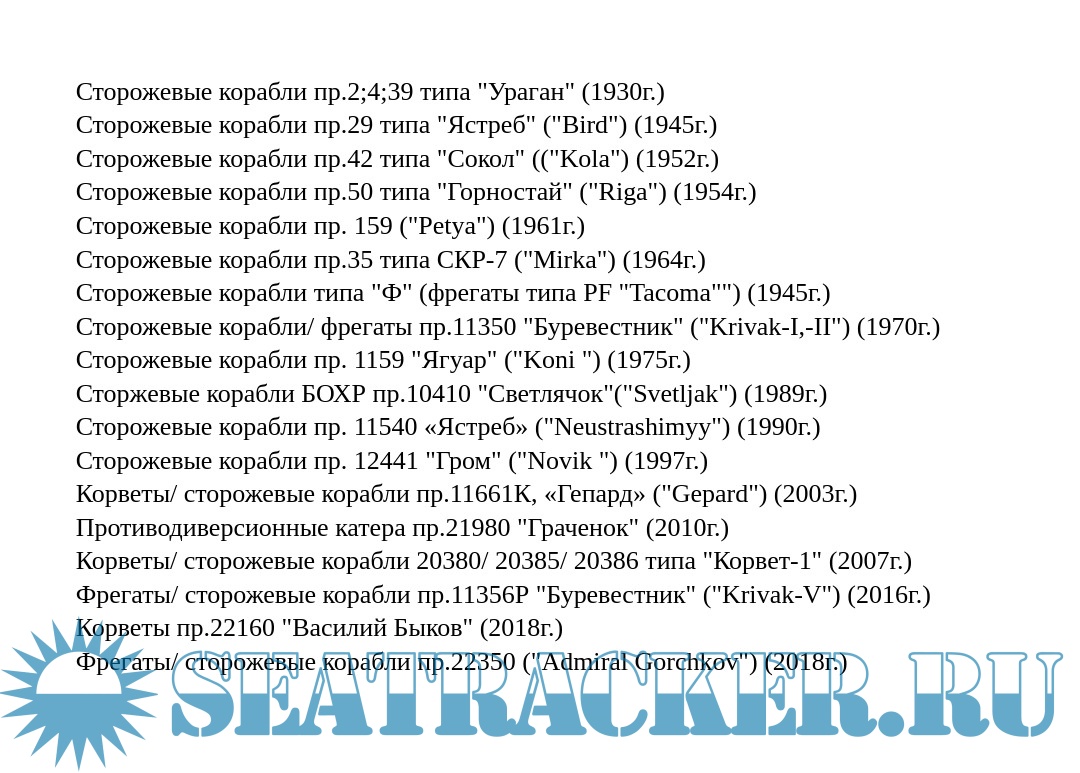 Фрегаты, корветы, сторожевые корабли СССР и России