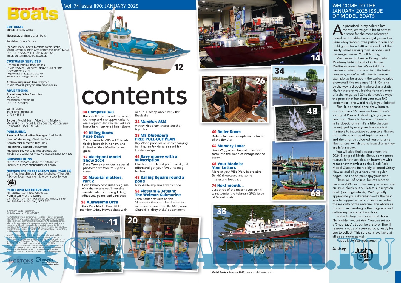 Year: 2025 Language: English Author: Lindsey Amrani (Editor) Genre: Periodical publication Edition: 2025-01 Format: PDF Quality: eBook Pages count: 92 Description: Model Boats magazine is a practical and informative read for those with a love for the hobby. It covers the latest news and views from the various clubs and associations around the country, useful hints, tips and step by step guides for those interested in the art of constructing a model boat as well as tests and recommendations of new boats and tools. Floating along behind these are great special features examining in depth different models from narrowboat to destroyer!