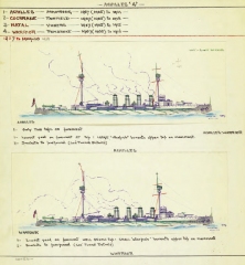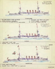 Description: Museum, where it still forms the core of the historic photos naval section. While he was actively acquiring photos, Perkins found that many were neither identified nor accurately dated, so he began to compile an album of his own drawings, which incorporated as much detail as possible on individual ships that could be amended as he discovered more information. His main concentration was on features differentiating ships of the same class and, wherever possible, precisely dating alterations to their appearance, all portrayed in exquisite multi-colored annotated line drawings. This project grew into an enormous resource covering virtually every Royal Navy ship from 1860 to 1939, when security restrictions forced Perkins to stop work. This material was also donated to the National Maritime Museum, where it was bound into eight large folio volumes that became a key reference for the curators of historic photos, but unknown and almost inaccessible to the interested public. This makes this first publication an event of the utmost importance for every enthusiast and ship modeler-it reproduces all the drawings at full-size and in color, and will eventually form a multi-volume set of unique reference value.