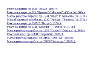 Описание: Малые ракетные корабли и ракетные катера СССР и России