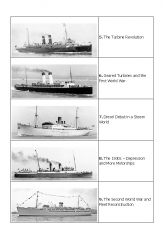From the mid-19th century paddle ferries slowly evolved into screw-driven steamers but it was the advent of the steam turbine and the construction of the railway steamers The Queen and Brighton in 1903 that caught the attention of the world. Similarly-propelled ships multiplied and their use soon spread to the Antipodes, Japan, the Mediterranean and North America. In 1912 Rudolf Diesel’s new oil engine went to sea in a cargo ship but it was not until 1925 that it was first employed to widespread acclaim in the Danish North Sea packet Parkeston. In 1934 it made its debut on the English Channel with the Belgian Government’s striking 25-knot motor ferry Prins Baudouin.