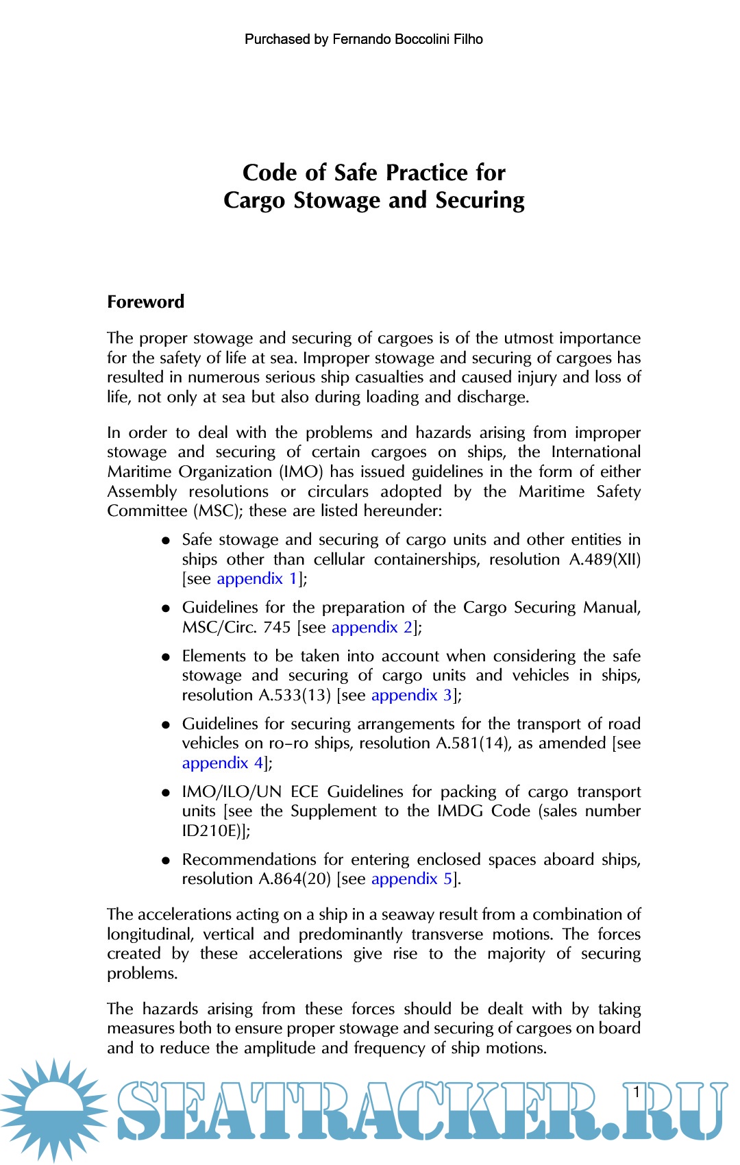 CSS Code 2011 - Code of Safe Practice for Cargo Stowage and Securing - IMO [2011, PDF]