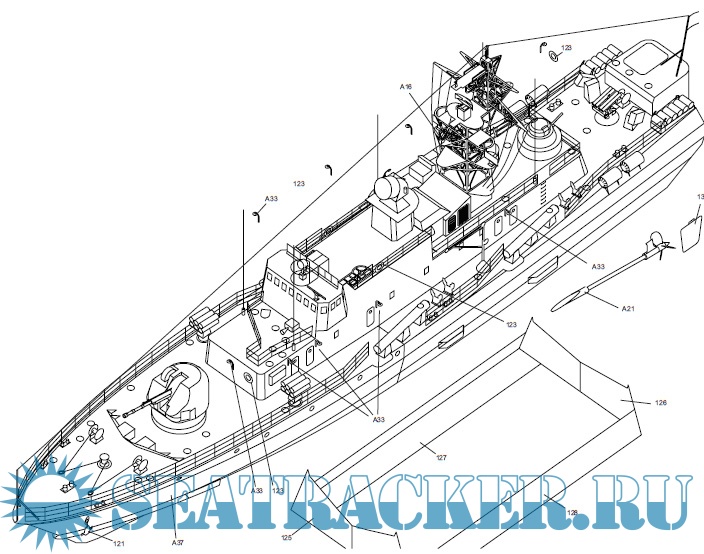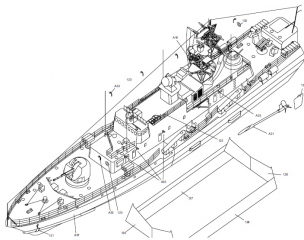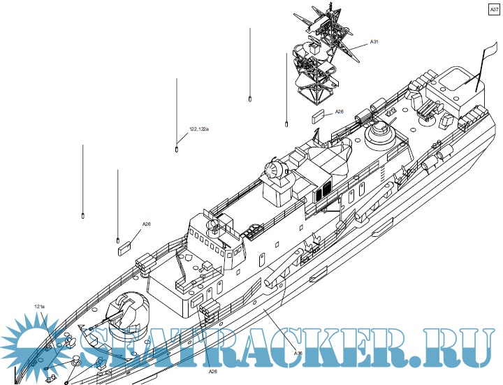 22 листа цветных выкроек и инструкций для изготовления бумажной модели противолодочного корвета ''Бодрый''