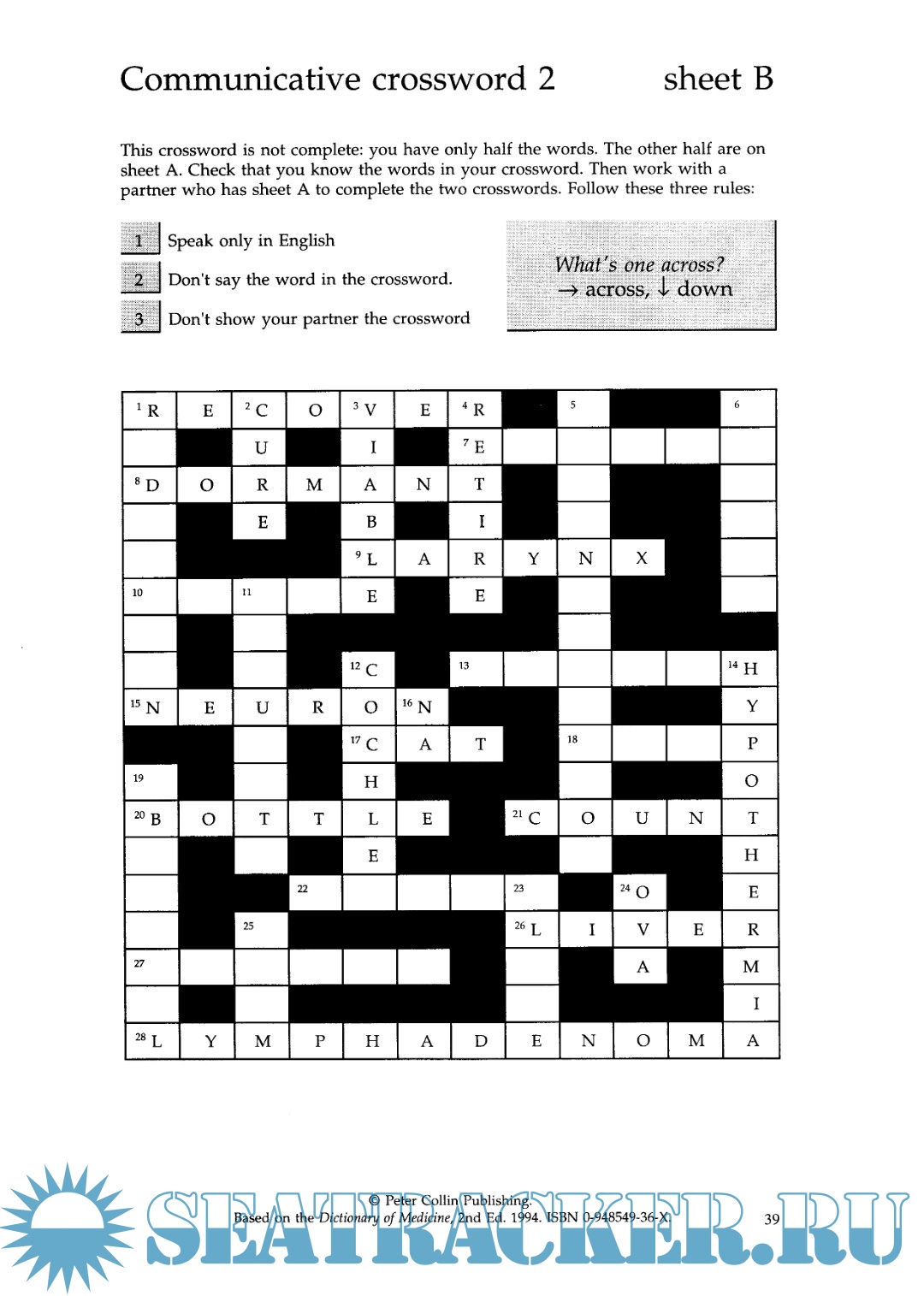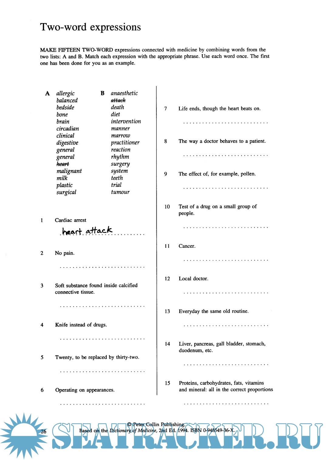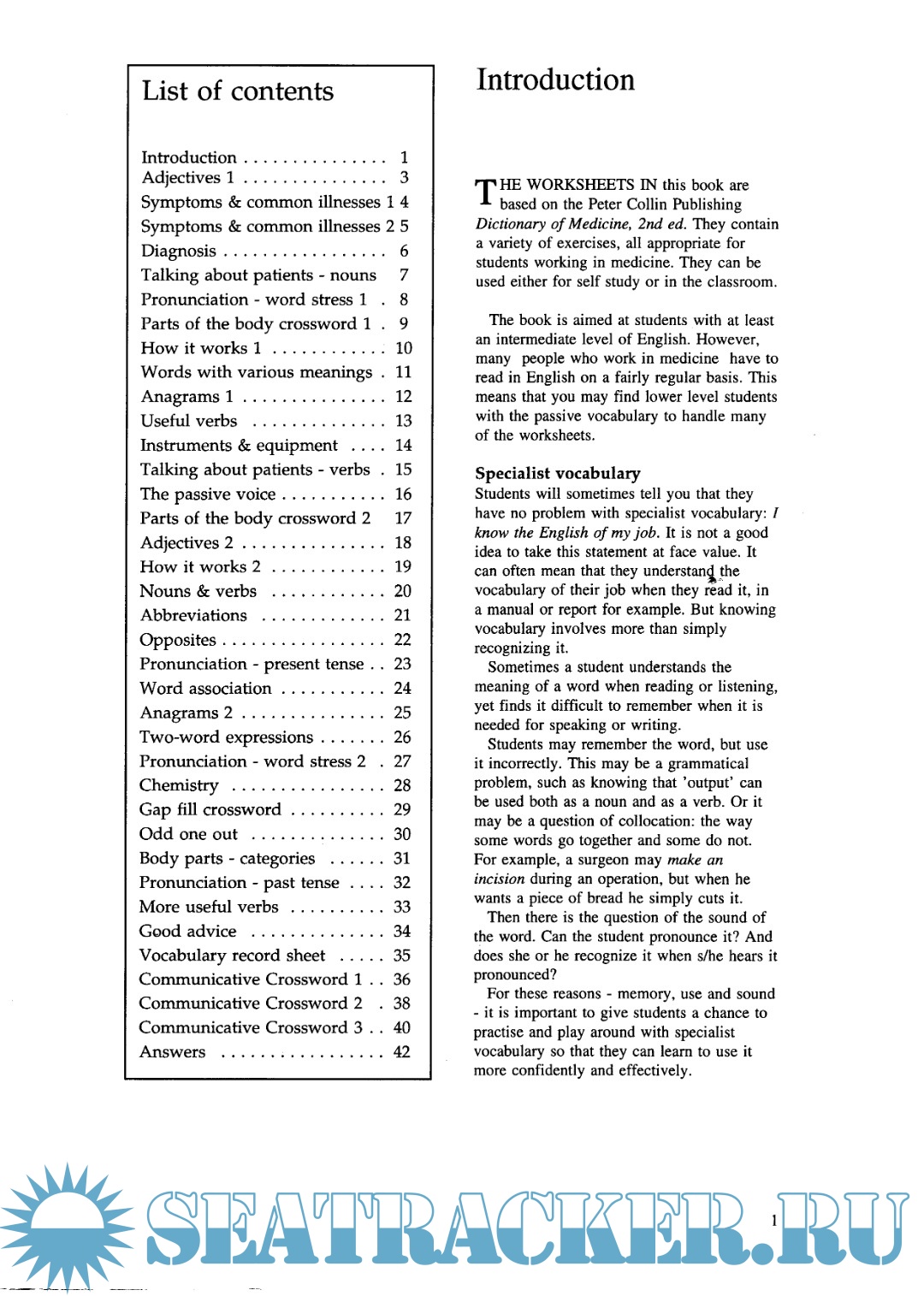 Year: 1995 Language: English Author: Riley D. Genre: Textbook Publisher: Peter Collin Publishing Format: PDF Quality: eBook Pages count: 49 Description: This textbook contains exercises to help you learn and reinforce medical vocabulary. The book is structured in a clear and easy-to-use manner. It combines self-study with classroom work. Этот учебник содержит упражнения, помогающие изучить и закрепить медицинскую лексику. Структура книги ясна и проста в применении. В ней скомбинирована возможность самостоятельного изучения и работы в классе.
