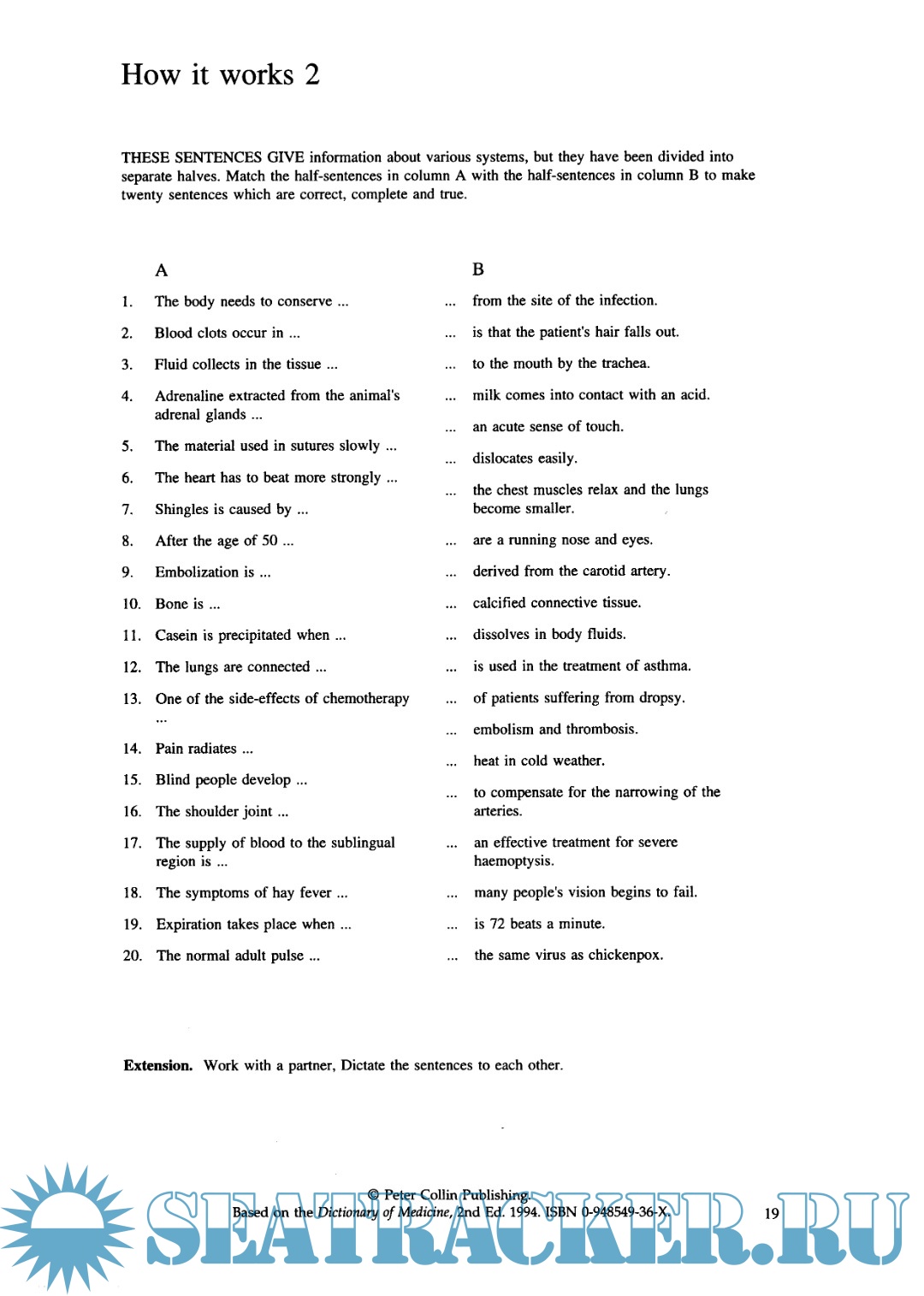 Этот учебник содержит упражнения, помогающие изучить и закрепить медицинскую лексику. Структура книги ясна и проста в применении. В ней скомбинирована возможность самостоятельного изучения и работы в классе.