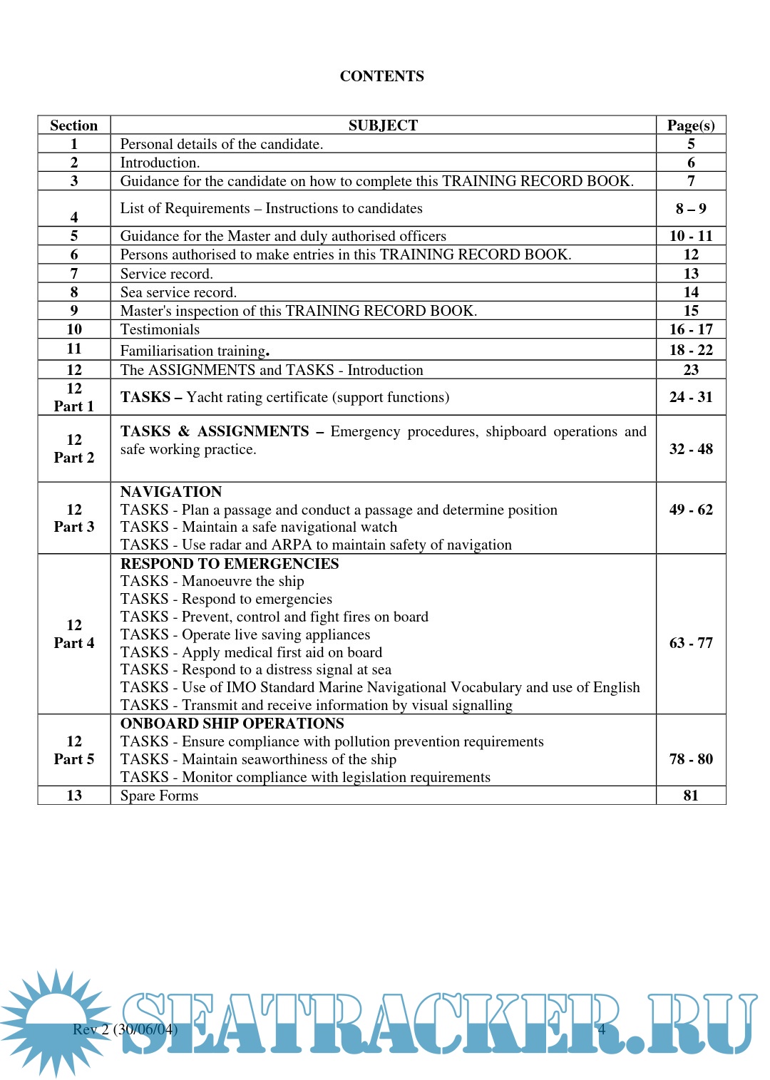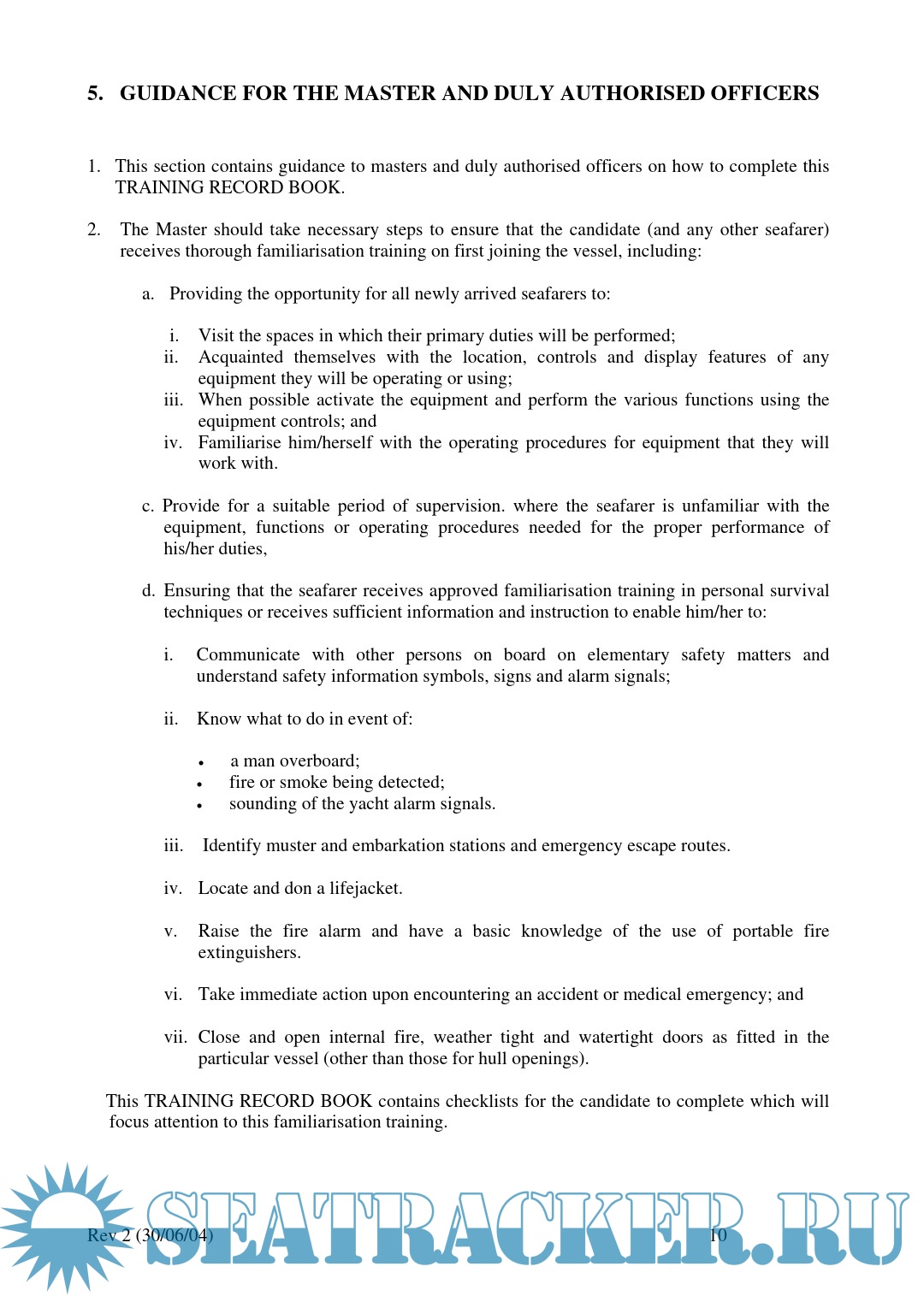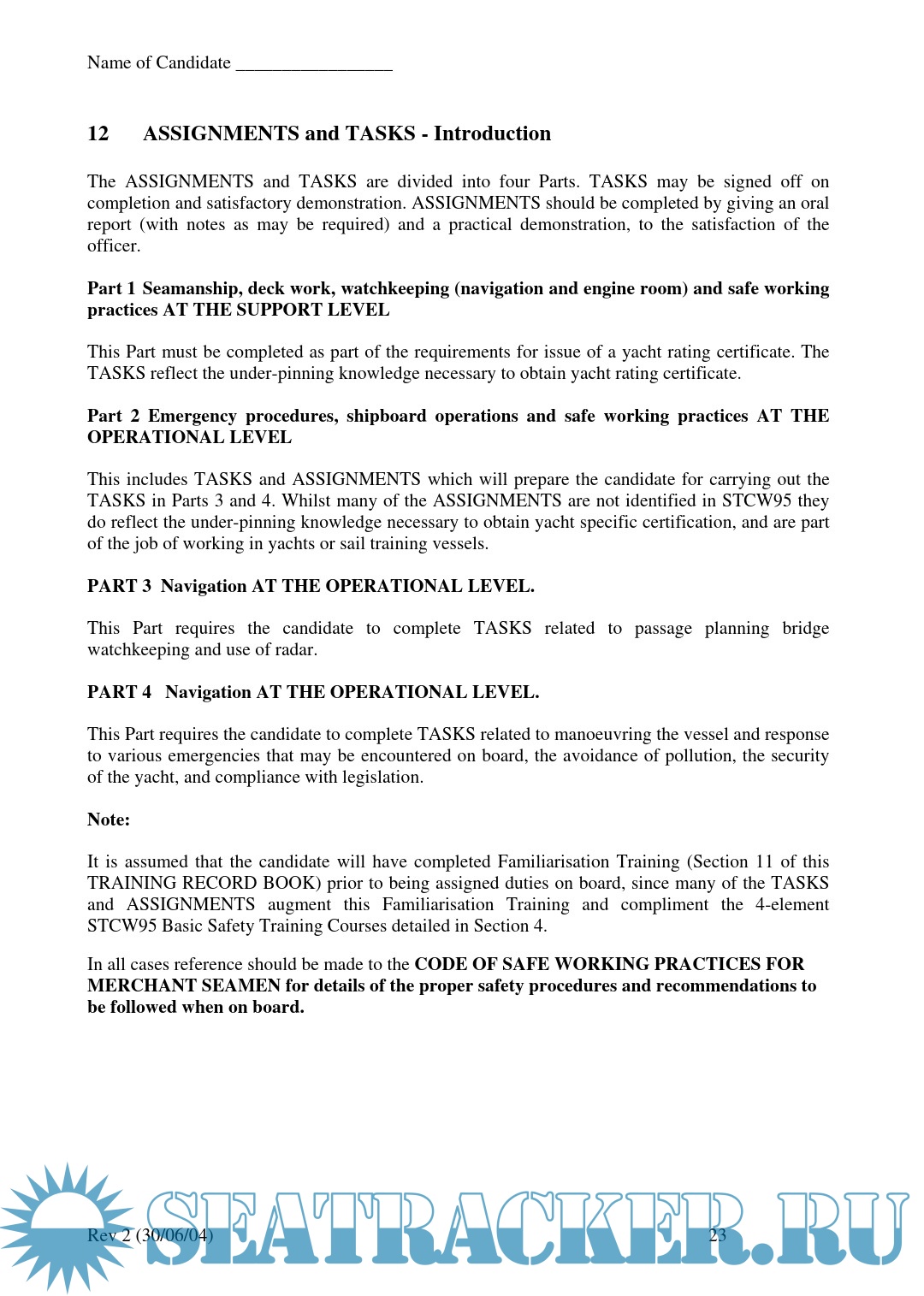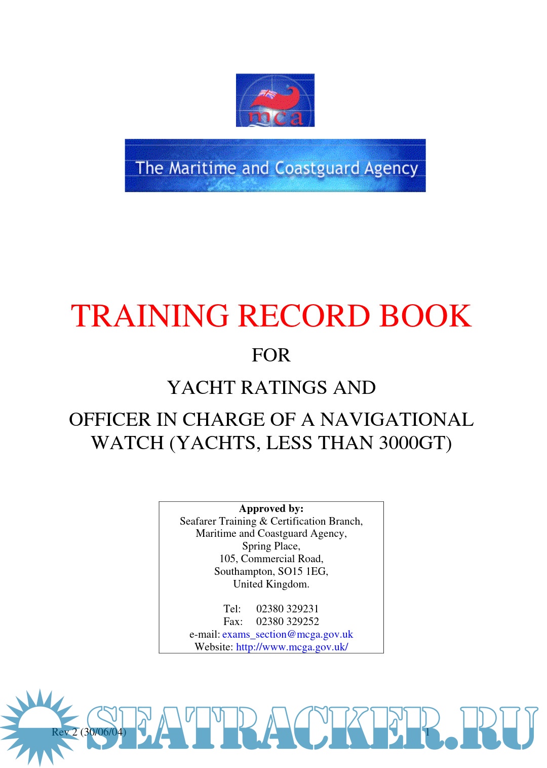 This TRAINING RECORD BOOK is approved by the MCA and must be fully completed with the Master or a duly authorised Officer verifying that the various ASSIGNMENTS and TASKS are completed by signing the appropriate sections. Guidance for the Master and Officers on the verification procedures are detailed in the Introduction Section.