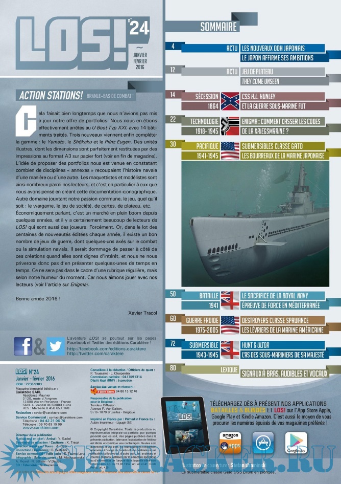 Description: LES ÉDITIONS CARAKTÈRE PRENNENT LE LARGE EN LANÇANT UN NOUVEAU MAGAZINE CONSACRÉ À LA GUERRE NAVALE !Les sujets passionnants ne manquent pas et LOS ! met un point d’honneur à les présenter au lecteur comme cela n’a jamais été fait dans la presse française jusqu’à présent. Un seul mot d’ordre pour l’équipe rédactionnelle : rigueur scientifique et présentation ludique !S’appuyant sur un fond photographique d’exception, sur des plans de bateaux et d’avions, les éditions Caraktère innovent une fois de plus en vous proposant aussi des vues 3D détaillées, le tout au service de textes soigneusement rédigés par des auteurs spécialisés. Vous comprendrez ainsi comment fonctionne un submersible, comment se déroule un combat naval, comment est conçu un cuirassé ou comment attaquent les avions-torpilleurs !Revivez au fil des pages l’aventure humaine exceptionnelle des matelots de la marine marchande affrontant les U-Boote en Arctique, ou celle des pilotes embarqués sur les porte-avions américains et japonais. Lisez les exploits des hommes-grenouilles italiens en Méditerranée, des équipages des vedettes lance-torpilles dans la Manche, des sous-marins soviétiques de la guerre froide ou des grands cuirassés de 1914-18