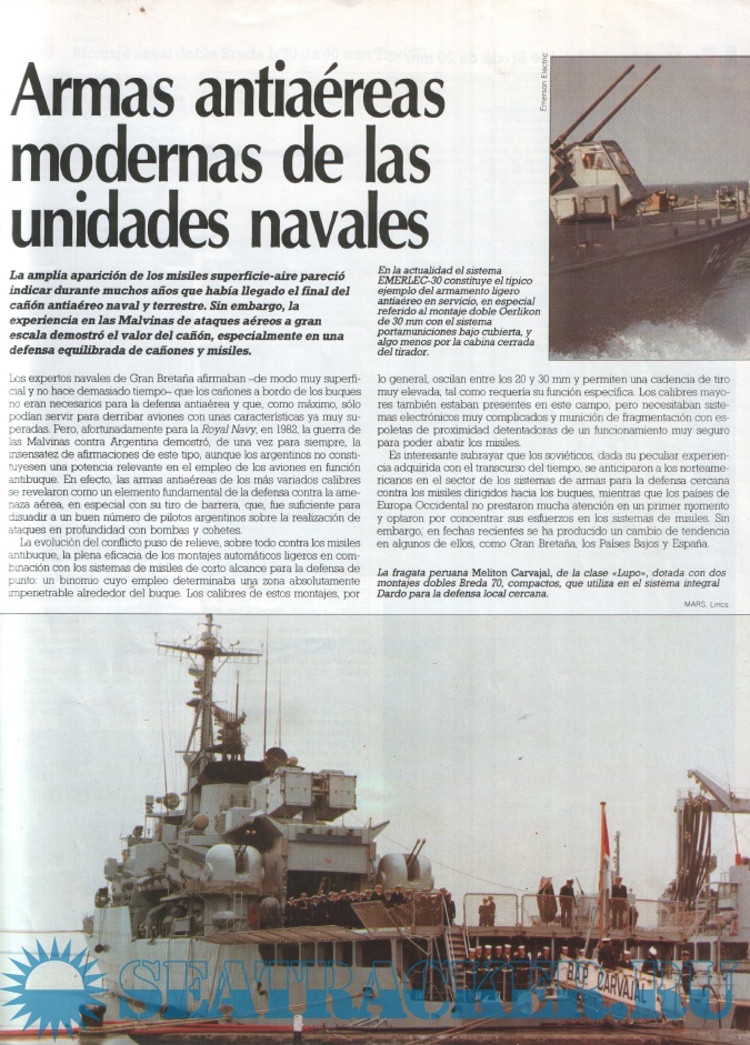 Year: 1986 Language: Spanish Author: Planeta-Agostini Genre: Periodical publication Publisher: Planeta-Agostini Format: PDF Quality: Scanned pages Pages count: 23 Description: Enciclopedia de las Armas del Siglo XX. La amplia aparicion de los misiles superficie-aire pareció indicar durante muchos años que habia llegado el final del cañon antiaereo naval y terrestre. Sin embargo, la experiencia en las Malvinas de ataques aereos a gran escal demostro el valor del cañon, especialmente en una defensa equilibrada de cañones y misiles.
