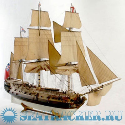 Набор для постройки модели судна выполнен специалистами концерна EUROMODEL. Его отличает богатая комплектация и применение надежных материалов, что превращает готовое изделие в украшение коллекции. Корпус выполняется из вырезанных с помощью лазера элементов, а затем обшивается двойным слоем рейки. Вниз идет липа, а верхний слой производится из ореха. Этот же материал идет на палубный настил, здесь вниманию авторов предлагаются 4 мм рейки, имеющие темный оттенок. Кроме этого, орех представлен форштевнем, который сделан из цельной заготовки. Артиллерия корабля включает два вида латунных орудий, а именно 12 пушек весом 4 фунта и 26 пушек весом 8 фунтов. Все они располагаются на деревянных подставках, причем здесь детально проработаны даже колеса.
