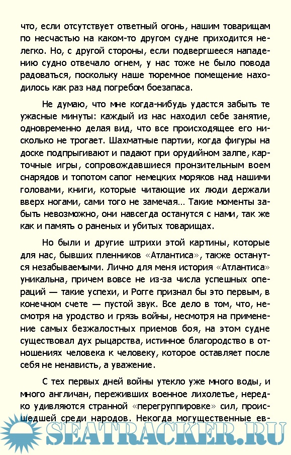 Описание: В этой книге повествуется об "Атлантисе"-самом успешном корабле нацистской Германии, который терроризировал торговое судоходство союзников в Индийском и Атлантическом океанах. За более чем шестьсот дней, проведенных в морях, Им было потоплено двадцать одно судно противника. В книге удивительно ярко рассказывается о его "перевоплощениях", искусной маскировке и маневренности.