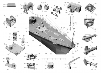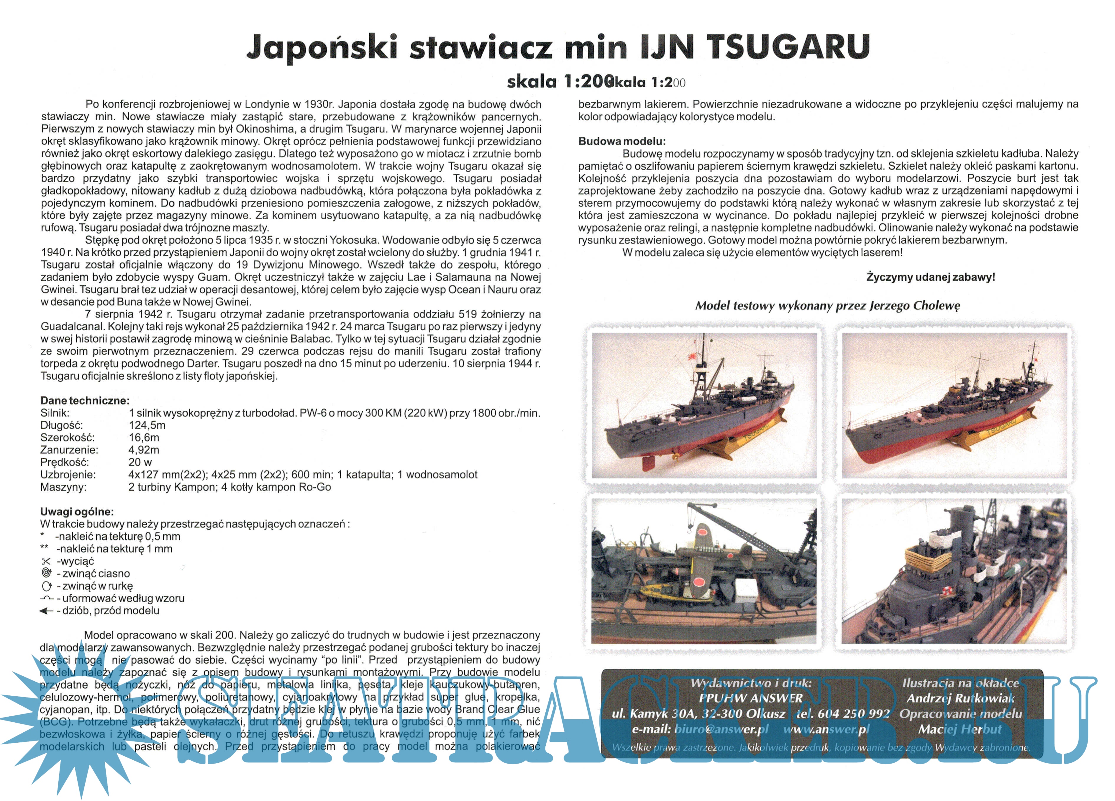 Описание: 27 листов цветных выкроек и инструкций для изготовления бумажной модели японского минного заградителя IJN Tsugaru в масштабе 1:200