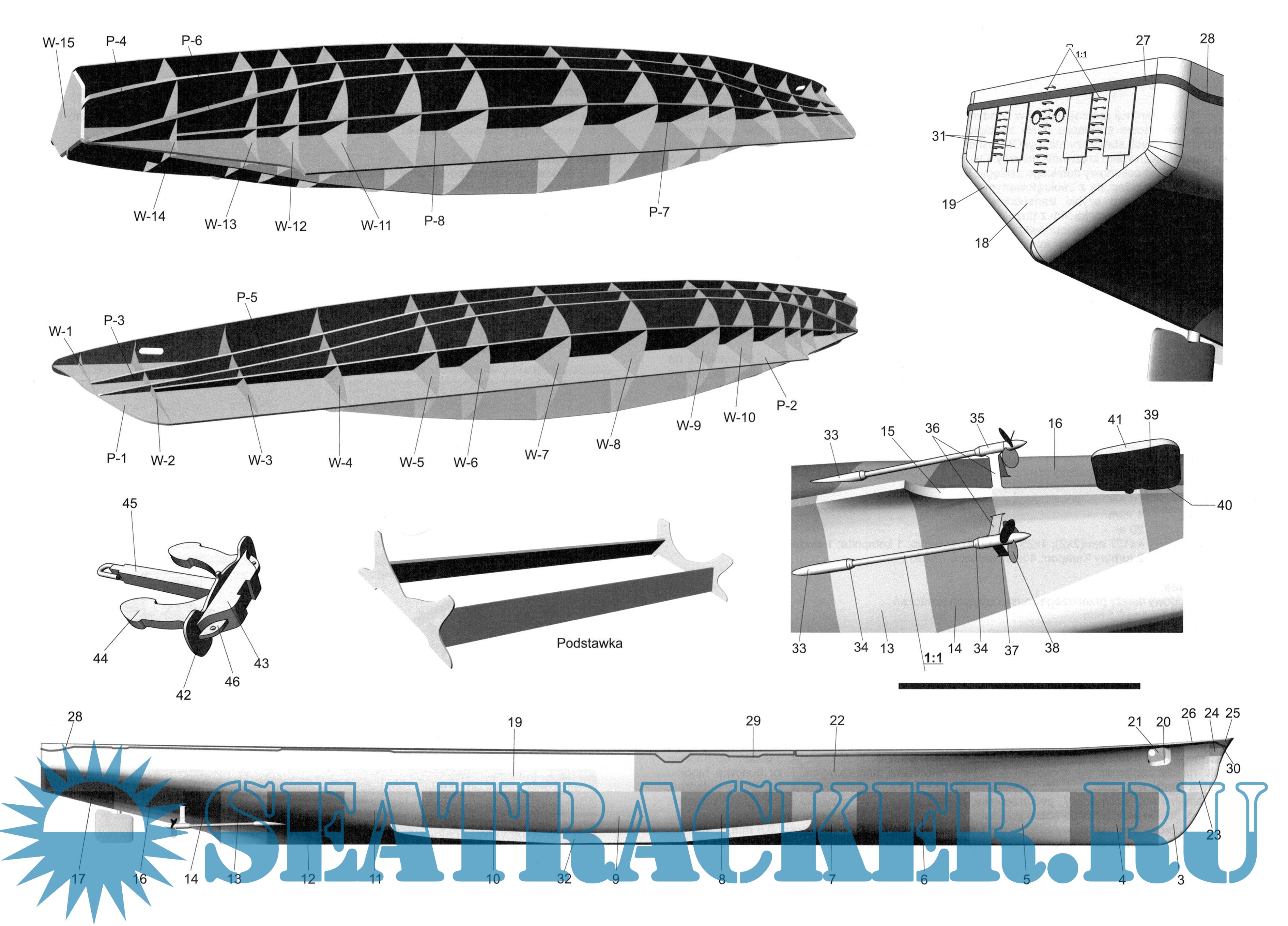 27 листов цветных выкроек и инструкций для изготовления бумажной модели японского минного заградителя IJN Tsugaru в масштабе 1:200