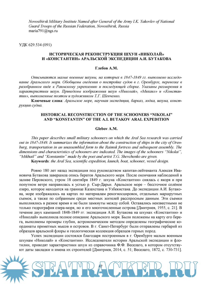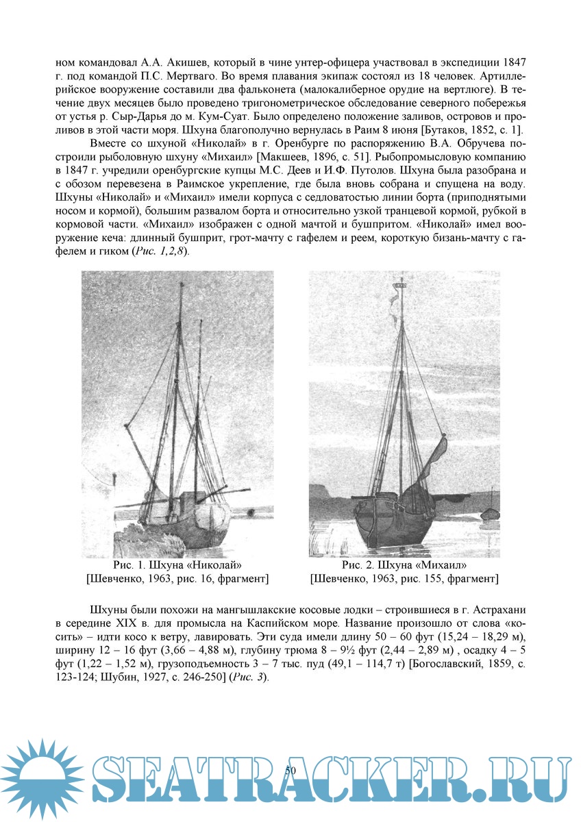 Описываются малые военные шхуны, на которых в 1847-1849 гг. выполнено исследование Аральского моря.