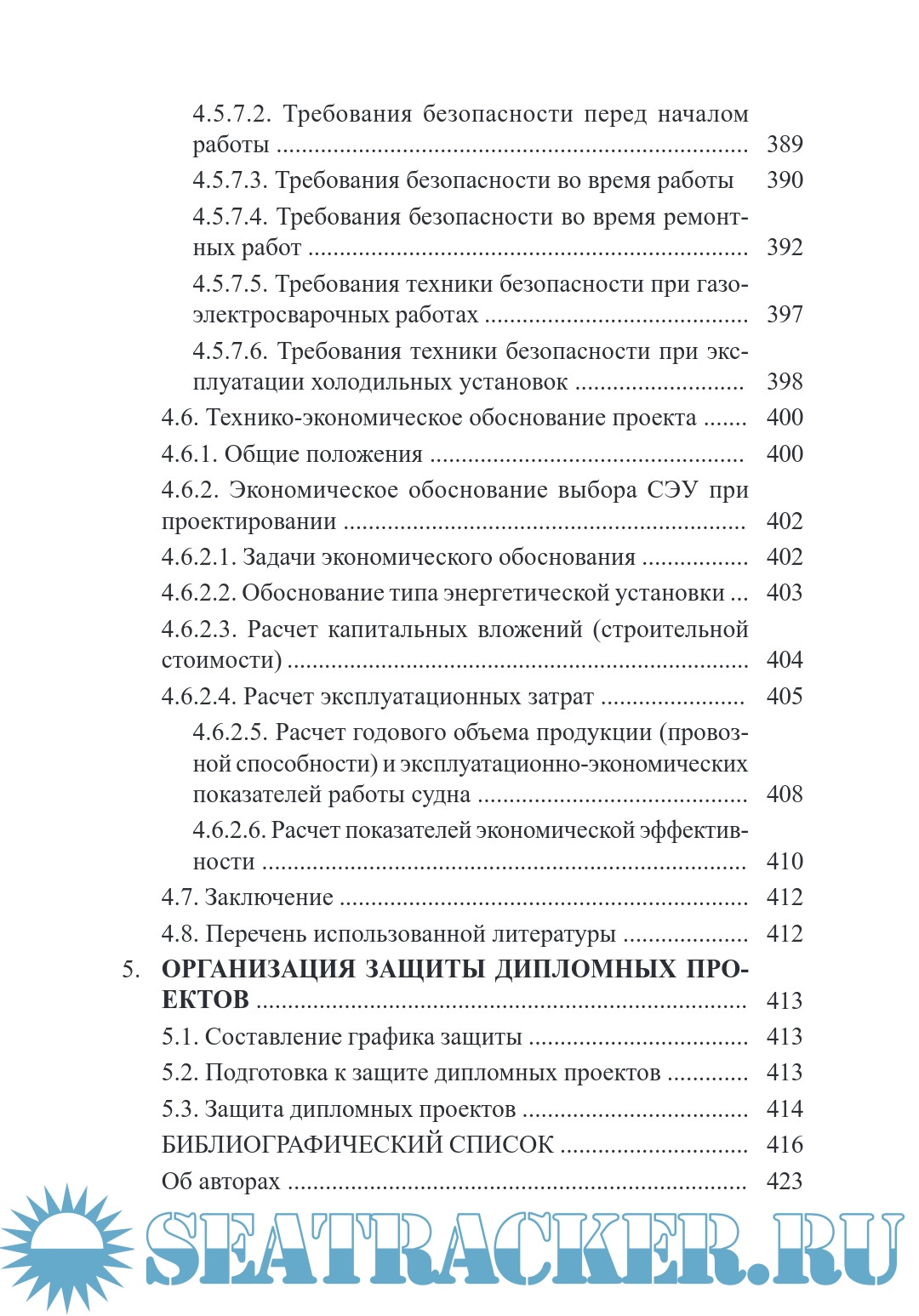 Введение. Основные разделы эксплуатационного характера. Общие сведения о судне и его СЭУ. Анализ структуры эксплуатационного времени судна. Анализ нагрузок главных и вспомогательных дизелей. Анализ надежности элементов СЭУ. Разделы общего характера. Конструктивный узел проекта. Технологическая часть. Повышение экономичности судовых энергетических установок. Охрана окружающей среды. Безопасность жизнедеятельности. Технико-экономическое обоснование проекта. Заключение. Перечень использованной литературы. Организация защиты дипломных проектов. Составление графика защиты. Подготовка к защите дипломных проектов. Защита дипломных проектов. Библиографический список. Об авторах.