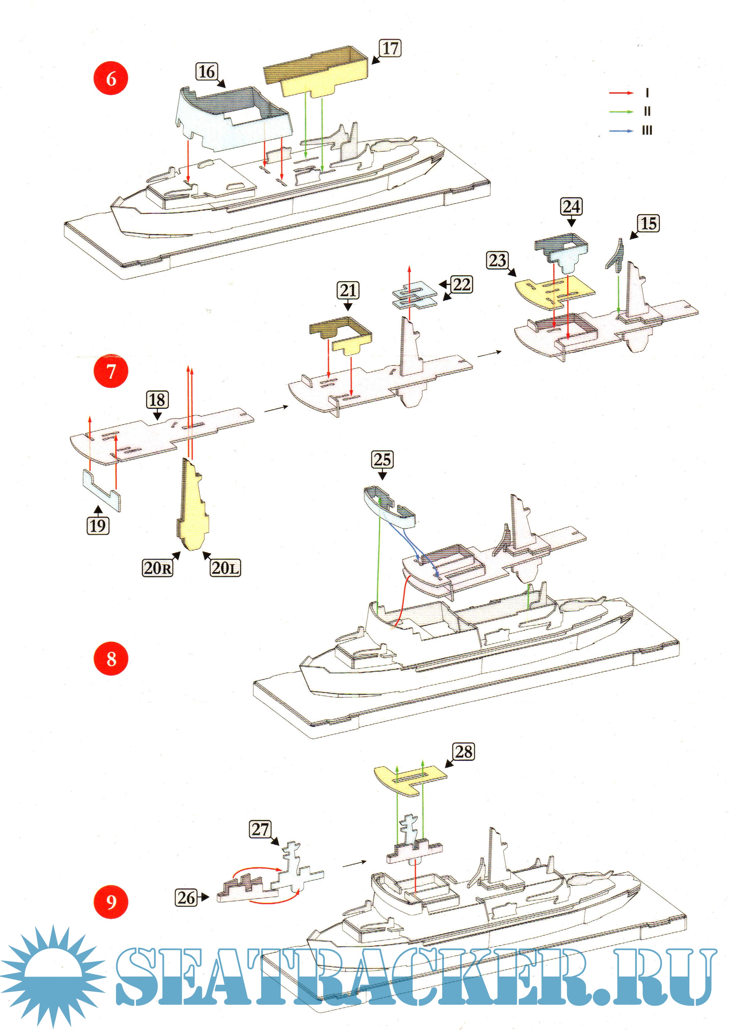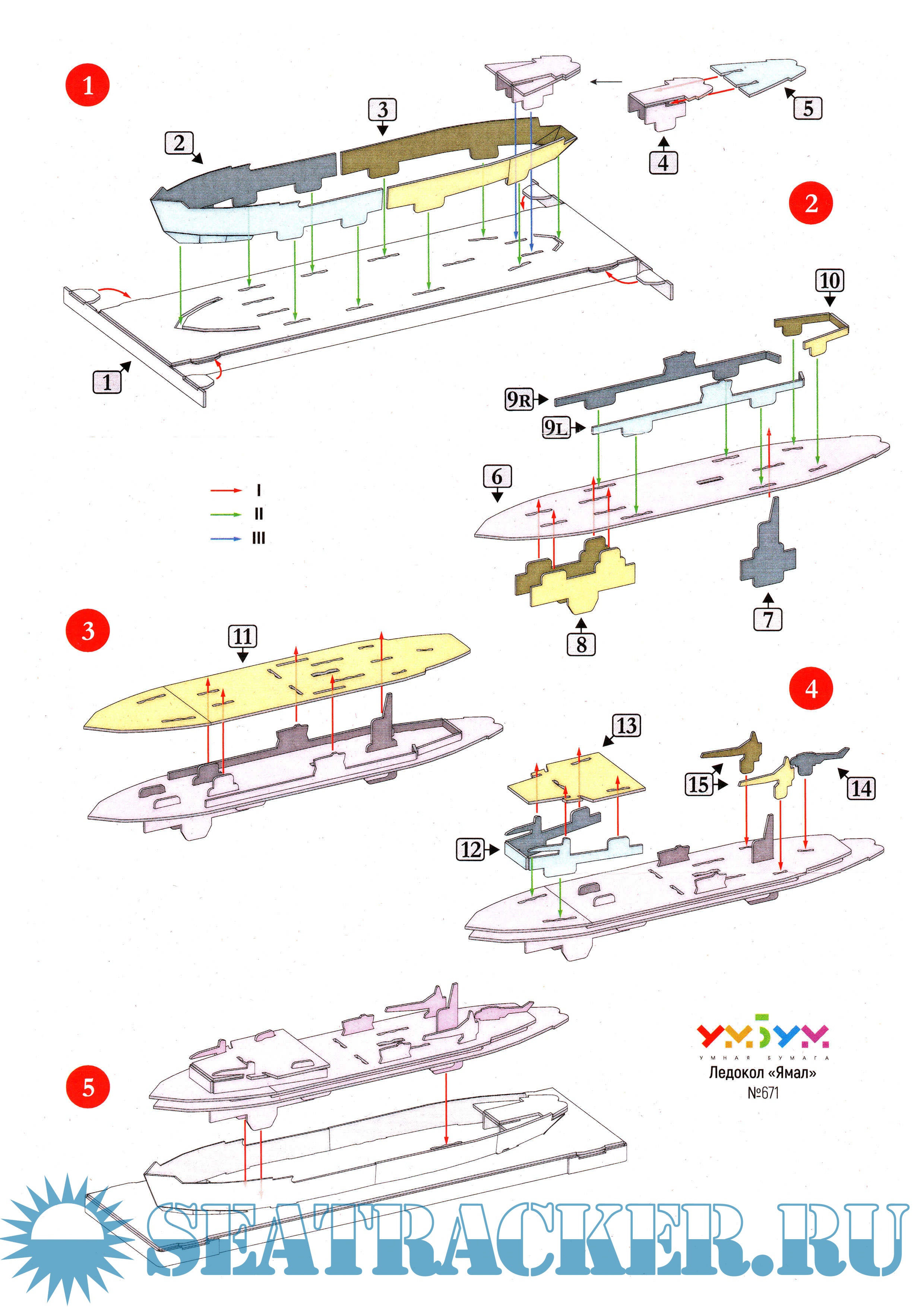 7 листов цветных выкроек и инструкций для изготовления бумажной модели ледокола "Ямал"