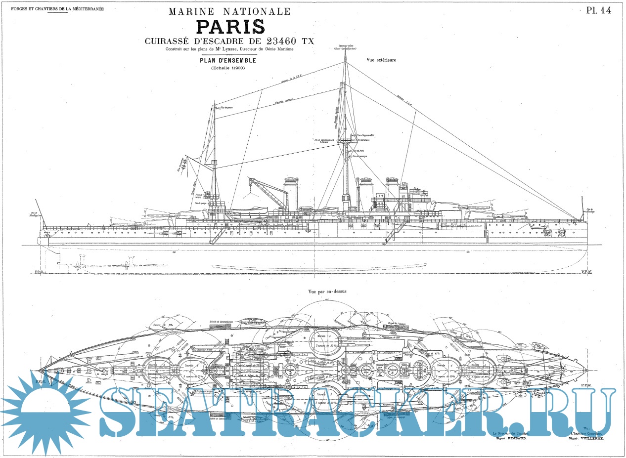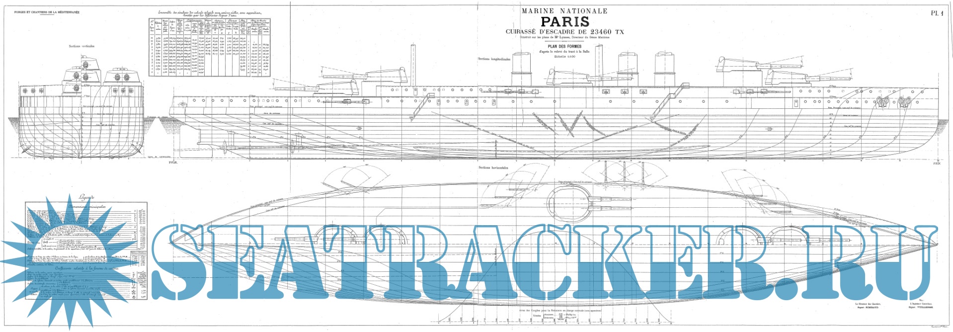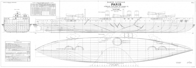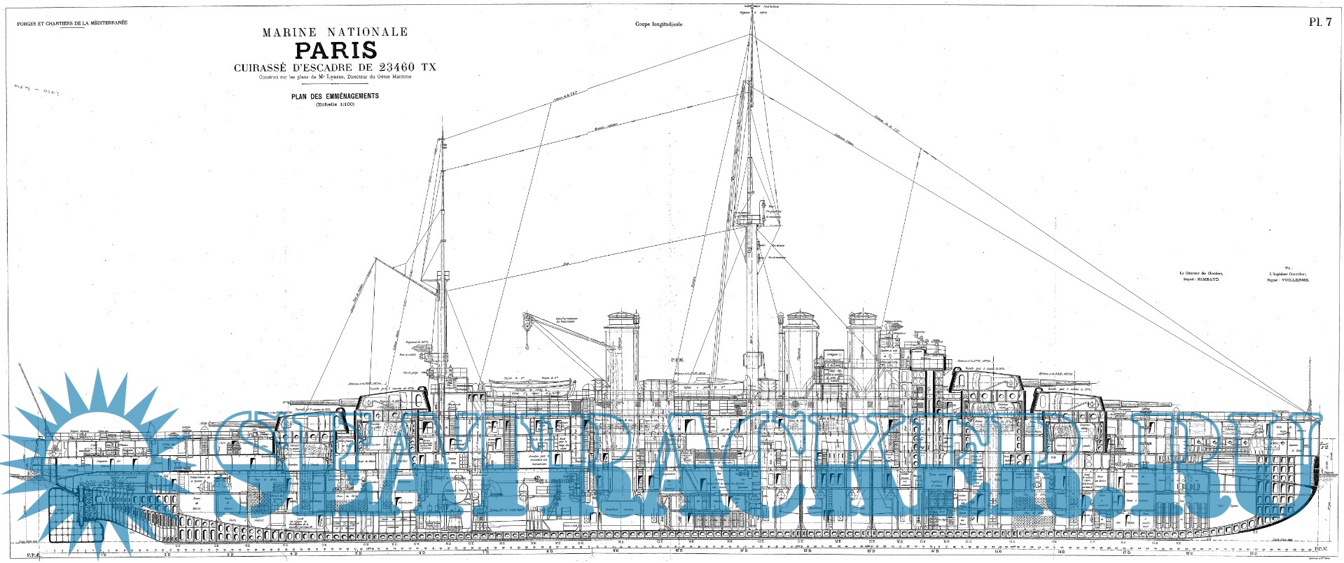 Описание: 34 листа архивных чертежей французского линкора PARIS 1912 год