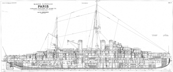 34 листа архивных чертежей французского линкора PARIS 1912 год