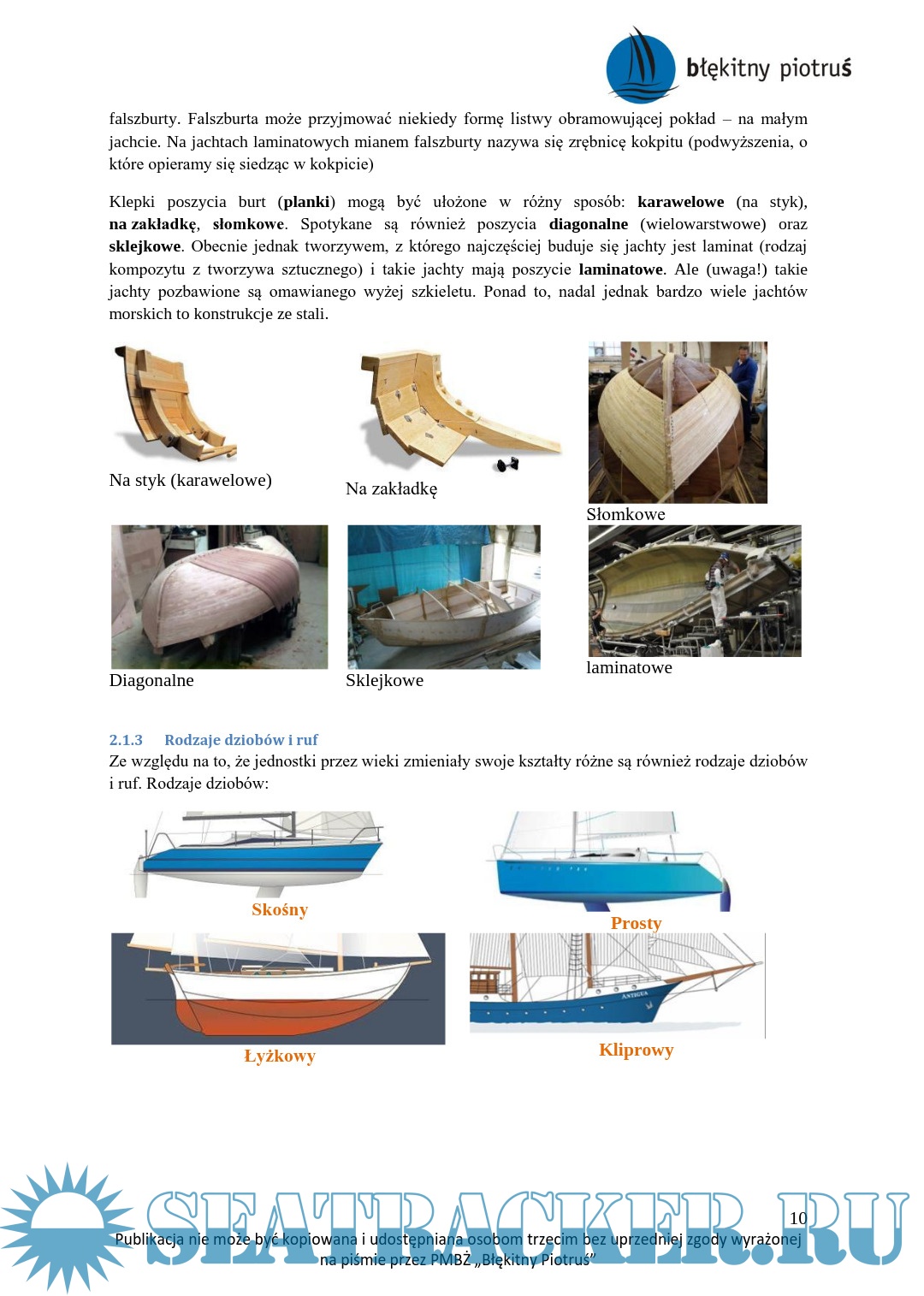 Rodzaje dziobów i ruf.