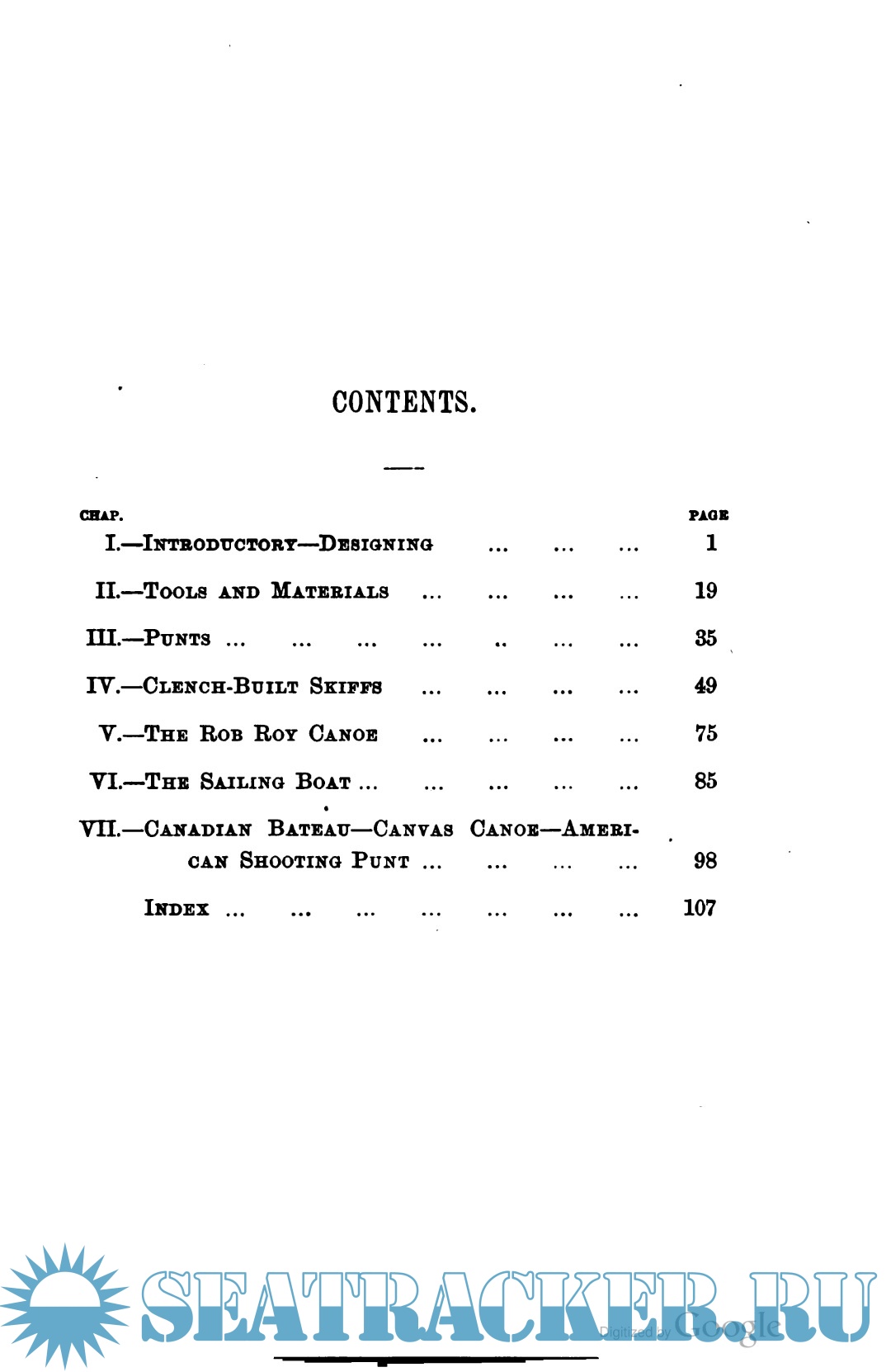 Description: A resource describing the methods of designing small boats, the tools and materials required, and a description of building methods for punts, skiffs, canoes, and sailboats. Illustrated and indexed.