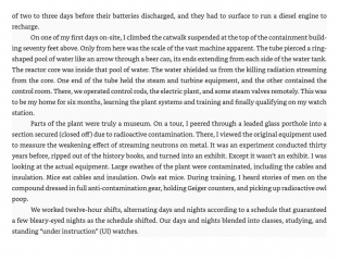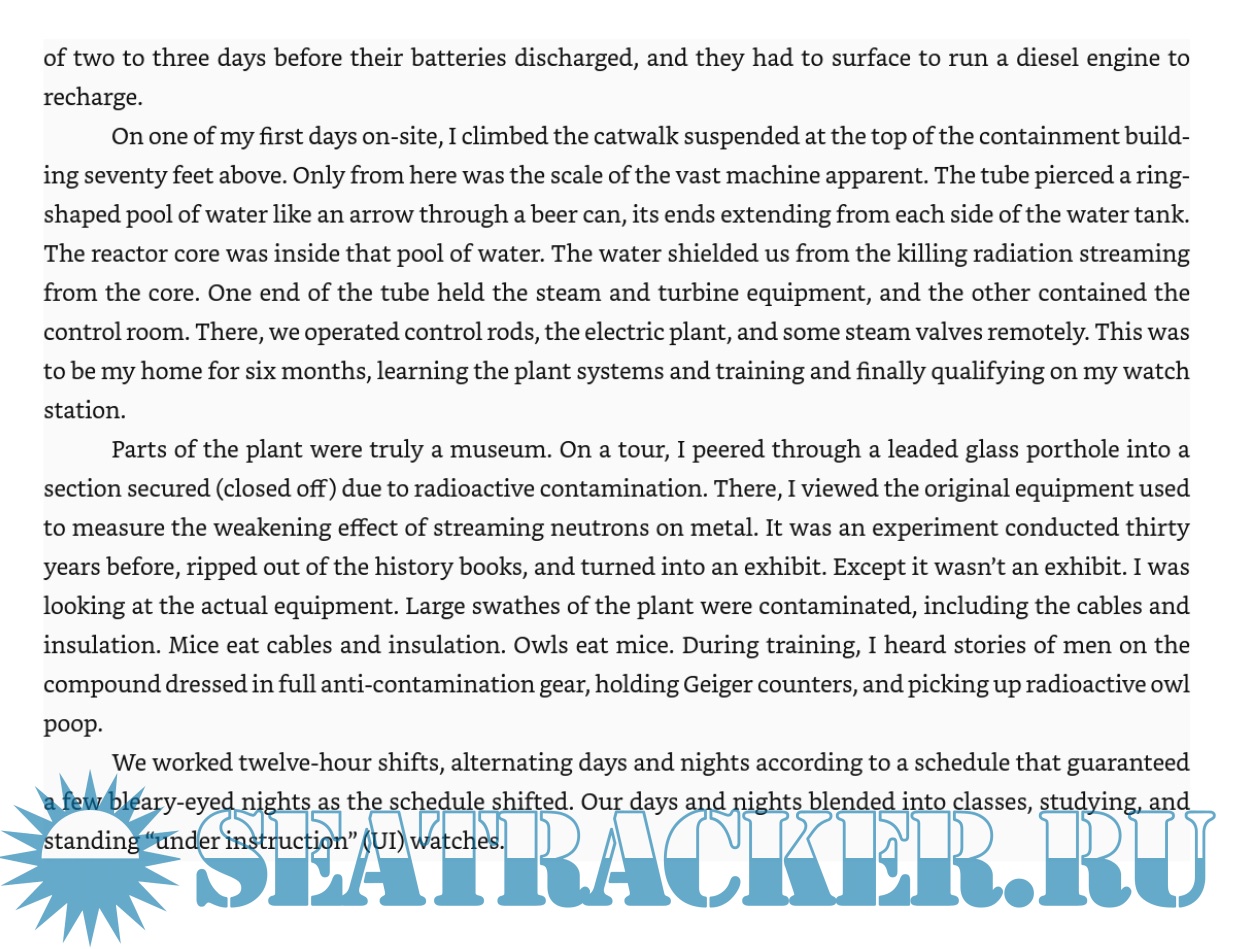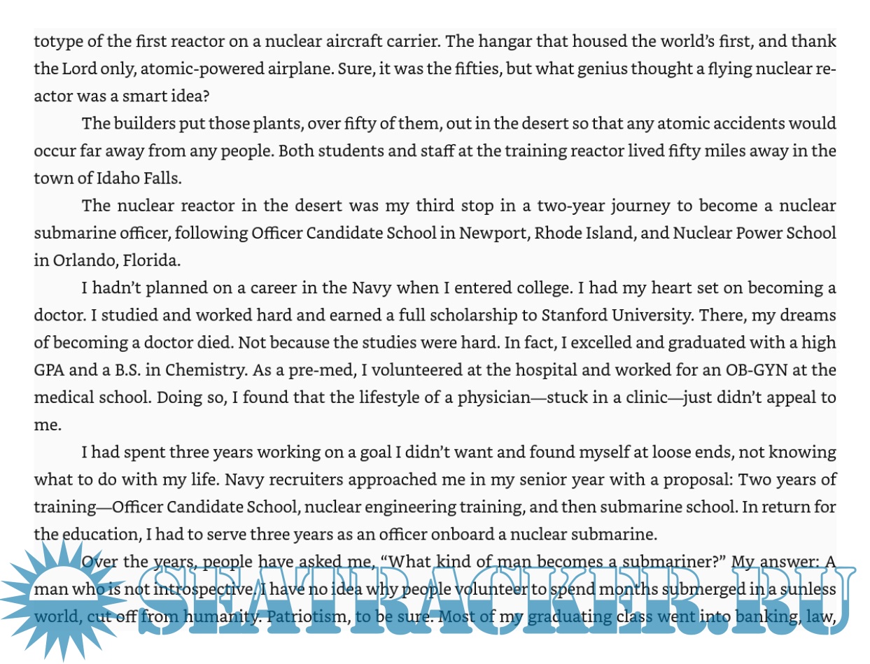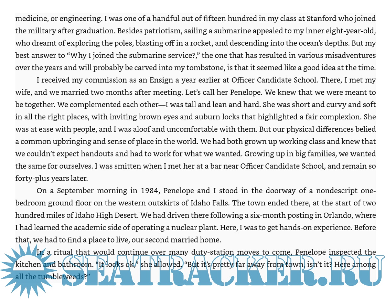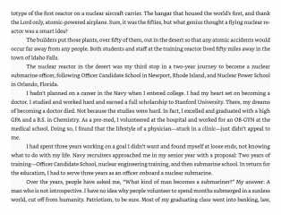 Description: The author graduates from an elite university and enters the submarine service in the mid-1980s when rhetoric between the US and USSR threatens to turn the Cold War hot. He encounters an unforgiving world where submarines hunt each other unseen and unheralded in the ocean depths and in which minor mistakes can result in catastrophe.