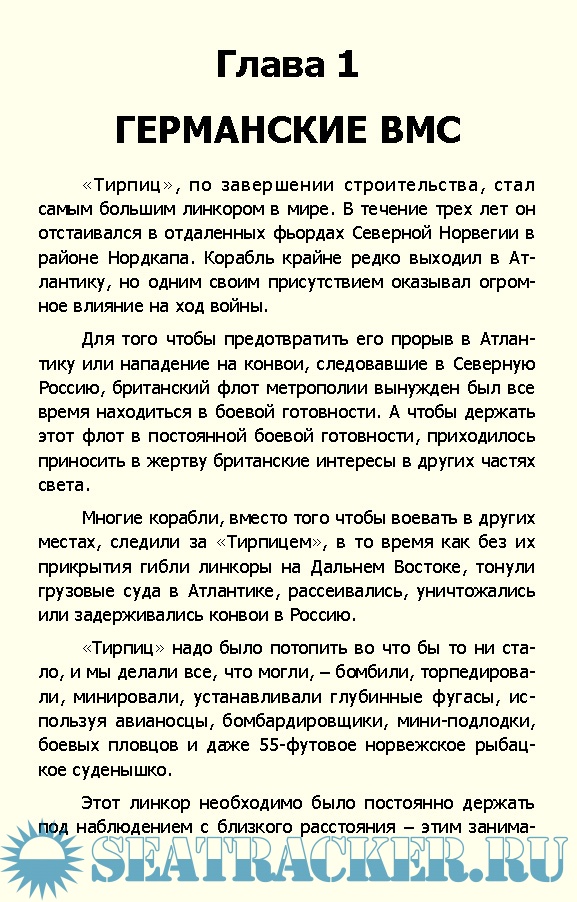Описание: Гигантский линкор «Тирпиц» был гордостью германского флота и самым большим военным кораблем в Западном полушарии. Одним своим существованием он оказывал серьезное влияние на ход войны. Контроль за действиями корабля требовал привлечения значительных сил воздушного и морского флотов. Эта книга рассказывает об отчаянных попытках союзников потопить гигантский линкор «Тирпиц», представлявший смертельную угрозу для военно-морского флота союзников в Атлантике.
