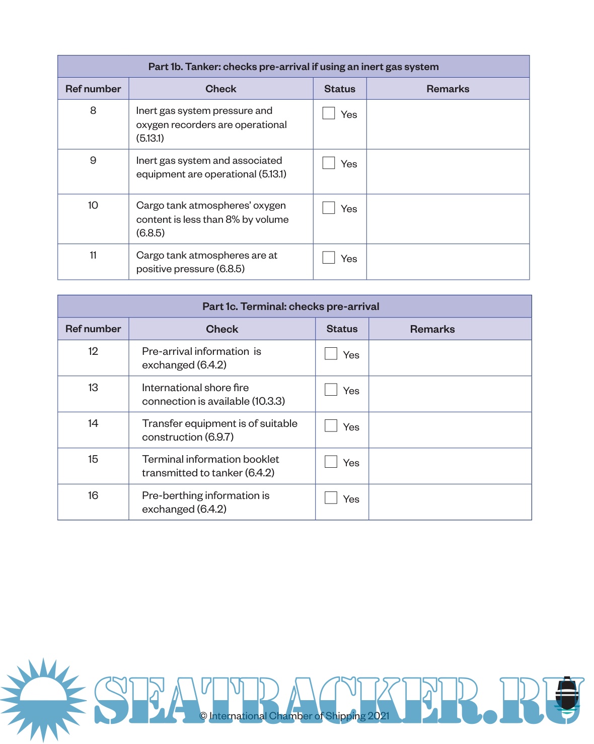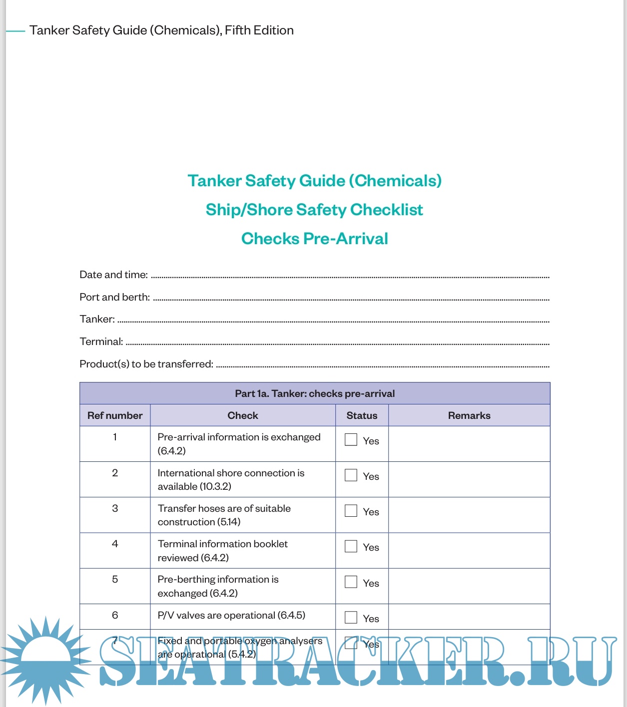 Tanker Safety Guide (Chemicals) Ship/Shore Safety Checklist