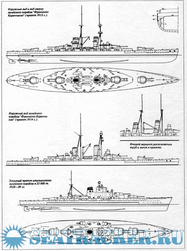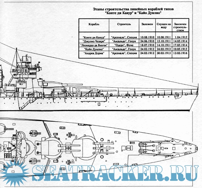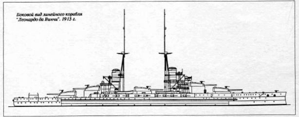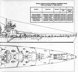 Описание: Можно с уверенностью считать, что линейные корабли типа “Конте ди Кавур” вполне соответствовали своему времени и отвечали требованиям итальянского военно-морского флота. Они были достаточно быстроходны, прекрасно скомпонованы, комфортны для экипажа, весьма хорошо вооружены, даже несмотря на сравнительно легкие орудия главного калибра. В первый период своей службы линкоры этого типа не нуждались в модернизации или какой-то крупной перестройки, за исключением небольших переделок.
